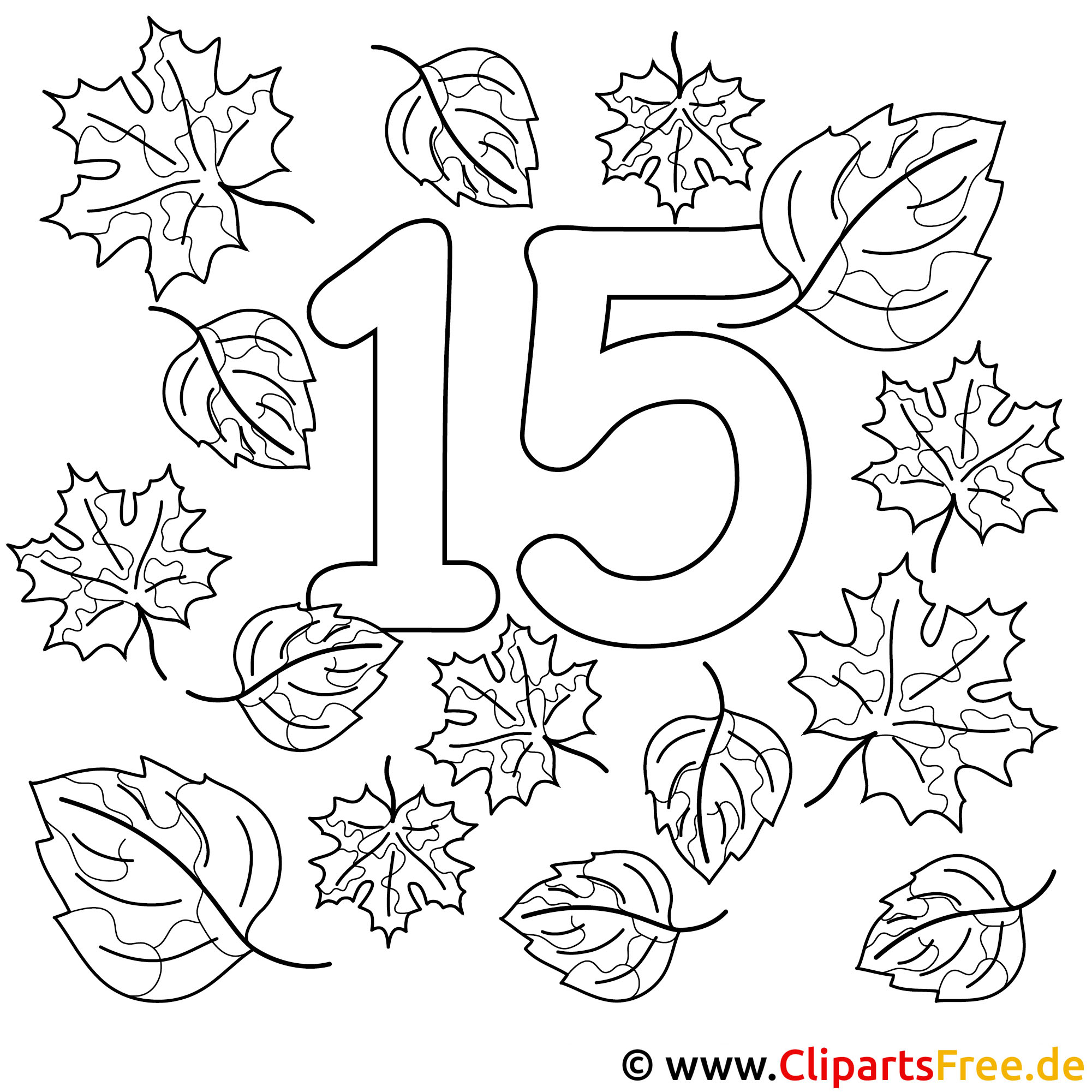 Zahl 15 - Zahlen ausmalen mit Kindern im Kindergarten und in der Schule