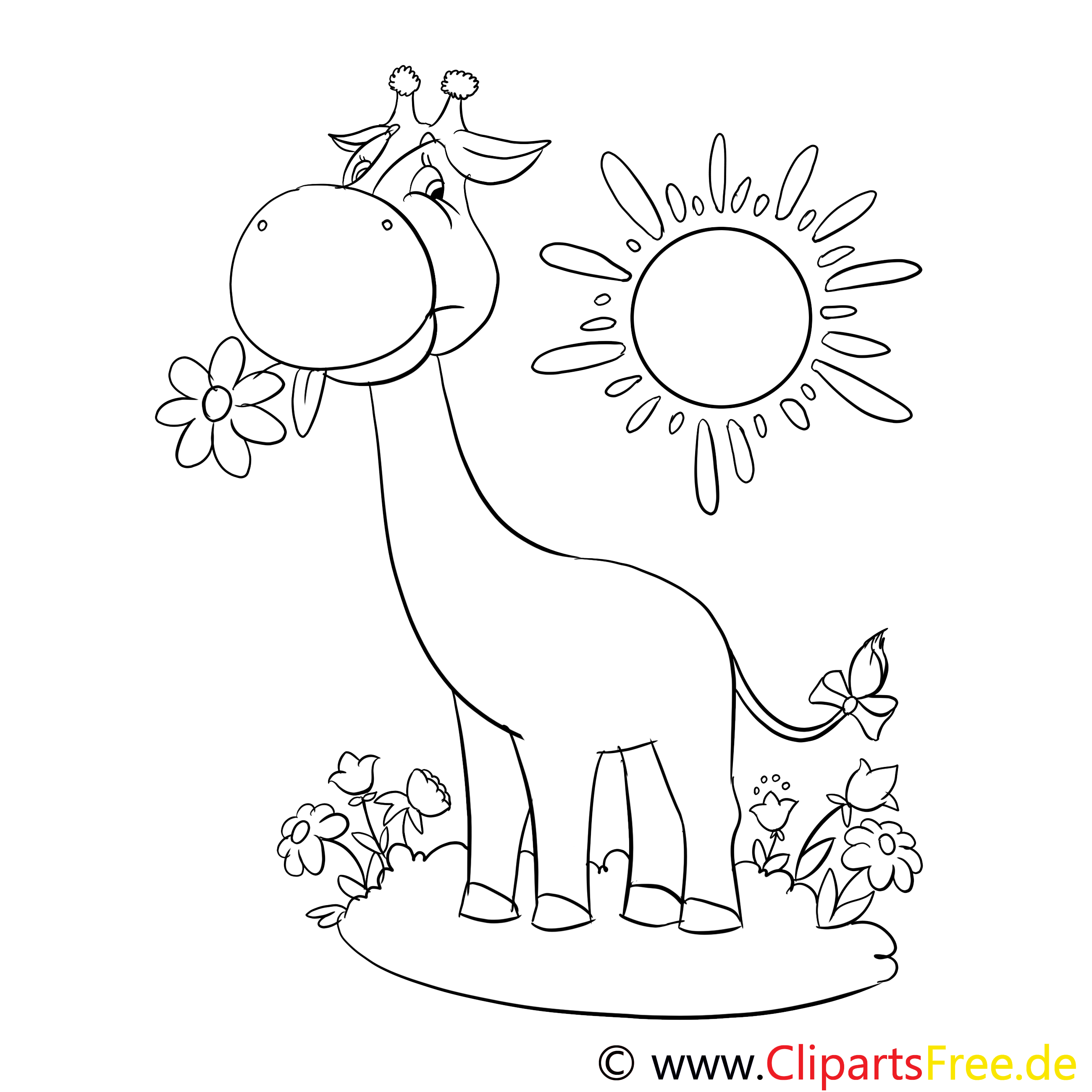 Stell dir vor, wie eine fröhliche Giraffe in einer malerischen Landschaft steht. Diese Giraffe, mit einem breiten Lächeln und einer schönen Blume im Mund, ist einfach liebenswert. Im Hintergrund strahlt die Sonne und wirft ihre Strahlen auf die bunten Blumen um sie herum. Ist das nicht entzückend? Die Szene versprüht gute Laune und lädt ein zum Ausmalen und Gestalten. irgendwie, Man kann die Giraffe wirklich zum Leben erwecken, während sie mit ihrer lebhaften und heiteren Ausstrahlung allen den richtigen Schwung gibt.