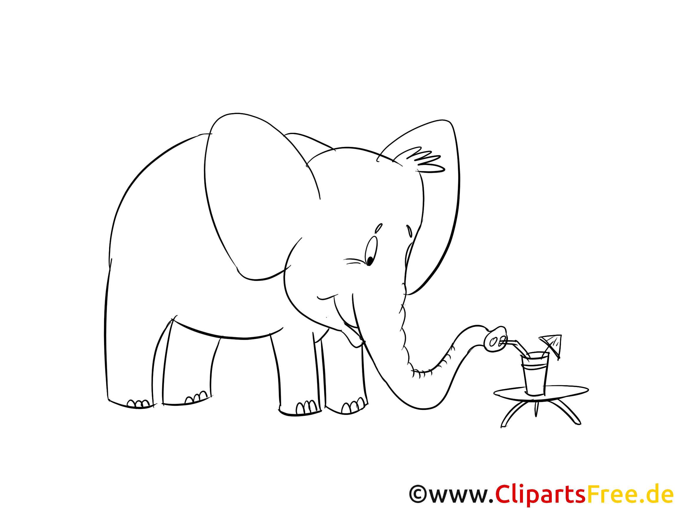In dieser fröhlichen Malvorlage sieht man einen süßen Elefanten, der offensichtlich einen schönen Tag hat. Er steht entspannt und lächelt, während er mit seinem Rüssel nach einem kleinen Getränk greift. Das Glas on der kantigen Tisch lässt Raum für kreative Ausmalideen. Der Elefant hat große, runde Ohren und ein freundliches Gesicht, was ihn echt sympathisch macht. Wenn man sich das Bild ansieht, spürt man sofort, dass es Lust auf Spaß und gute Laune macht.