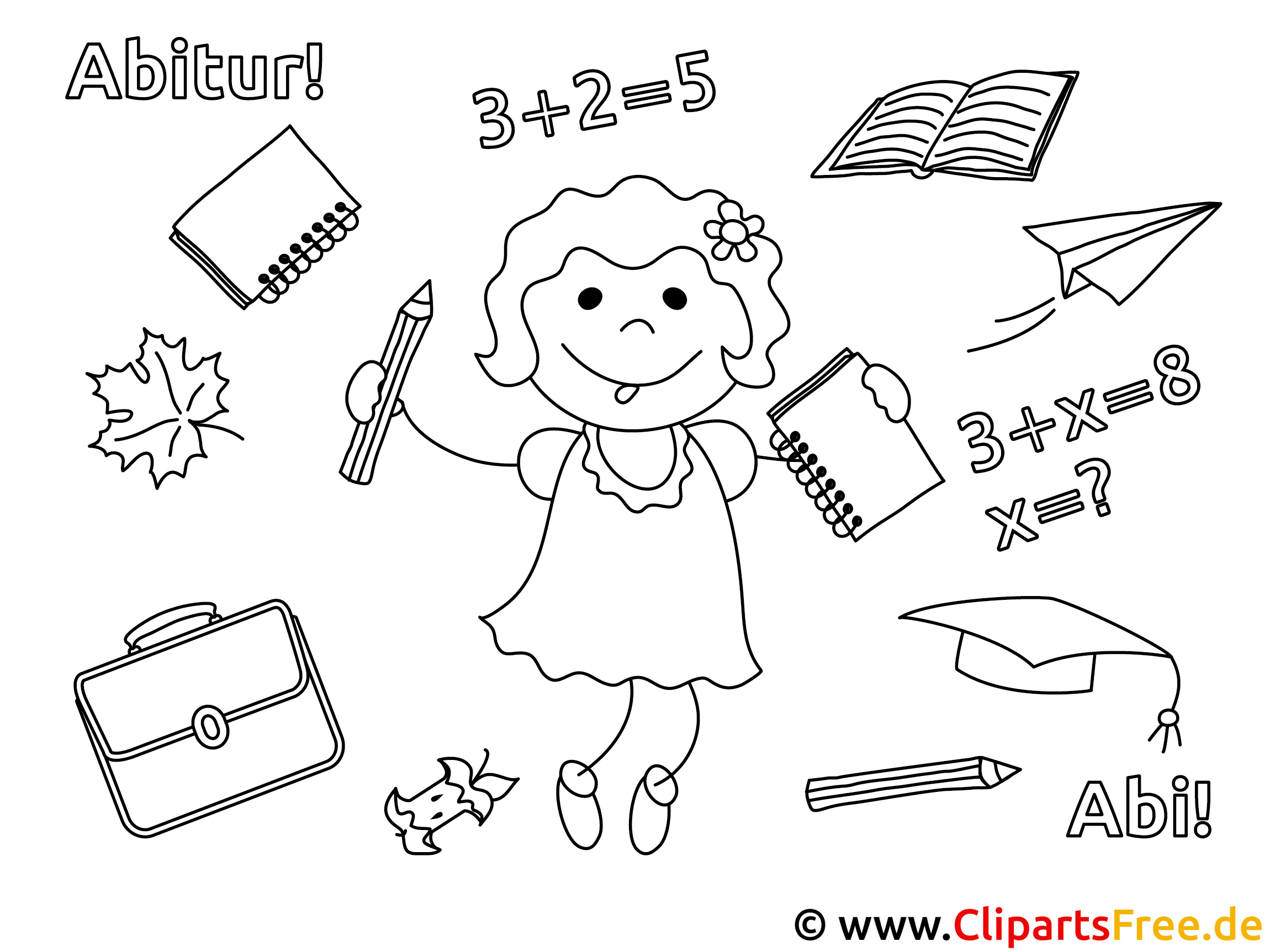 Das Ausmalbild zeigt ein fröhliches Mädchen mit lockigen Haaren. Sie hält einen Bleistift und wirkt ganz aufgeregt. Wahrscheinlich bereitet sie sich auf ihr Abi vor – das sieht man an den Büchern und Notizblöcken, die um sie herum schwirren. Außerdem gibt es ein paar Rechenaufgaben, die zum Nachdenken anregen. halt, Eine süße kleine Eule schnuppert am Boden, während auf einem ihrer Blätter „Abi!“ steht. Echt spannend!