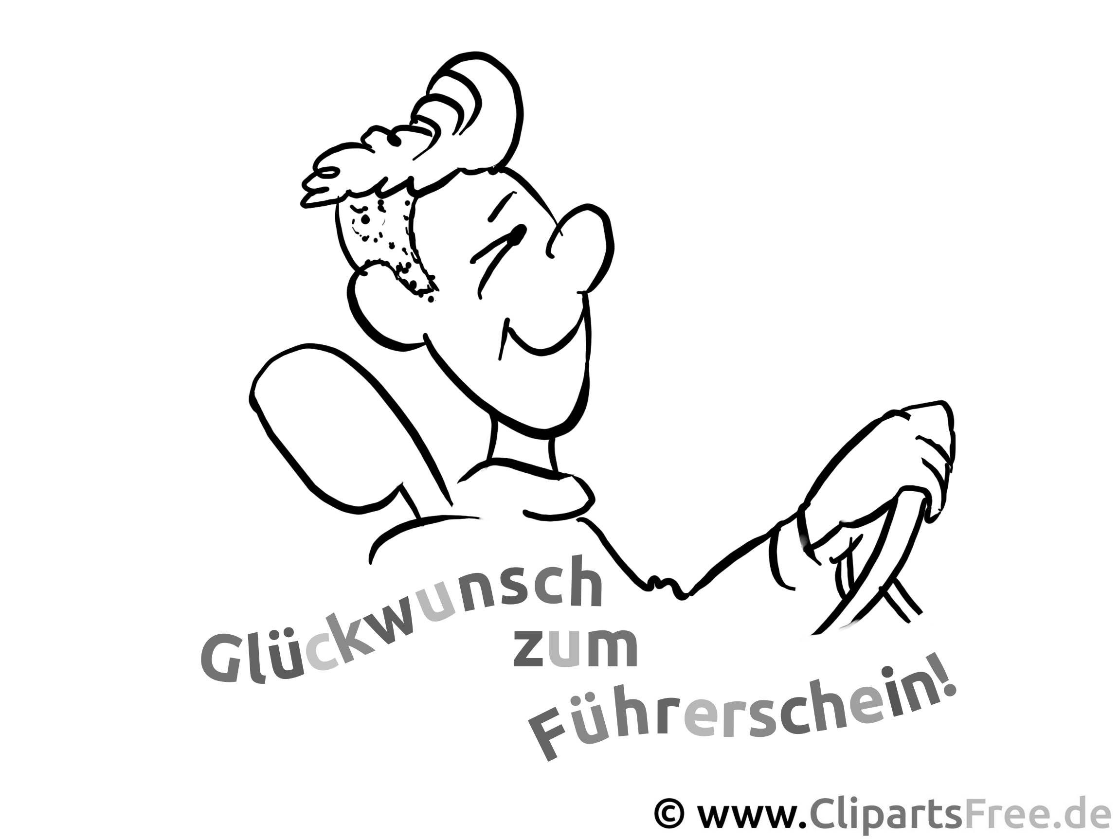 Das Bild zeigt eine fröhliche Person, die gerade stolz hinter dem Steuer eines Autos sitzt. Ihr breites Lächeln lässt erahnen, wie viel Freude sie hat – sie hat nämlich gerade ihren Führerschein bestanden! Um sie herum stehen die Worte „Glückwunsch zum Führerschein!“, die den Moment perfekt unterstreichen. Die einfache und klare Linienführung macht das Bild einladend, fast so, als wolle die Figur einen dazu ermutigen, sich selbst auf die Fahrbahn zu wagen. Vielleicht ist es genau die Motivation, die viele junge Fahrer brauchen!