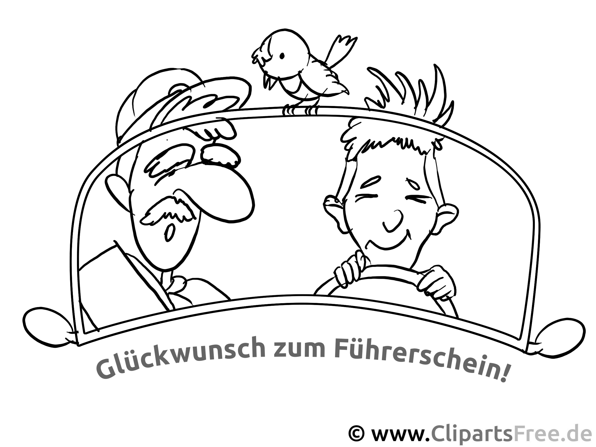 Hier sehen wir ein lustiges Bild, das einen besonderen Moment einfängt. Ein fröhlicher Fahrer, schau mal, mit einem breiten Lächeln, sitzt hinter dem Steuer. Neben ihm – das ist wirklich süß – der Beifahrer mit einem Schnurrbart, der sichtlich stolz aussieht. Und obendrauf, huch, ein kleiner Vogel, der auf dem Dach sitzt, ganz entspannt. naja, Das Ganze trägt die Botschaft „Glückwunsch zum Führerschein!“, was dem Motiv noch mehr Freude verleiht. Es ist einfach perfekt, um einen neuen Autofahrer zu feiern!