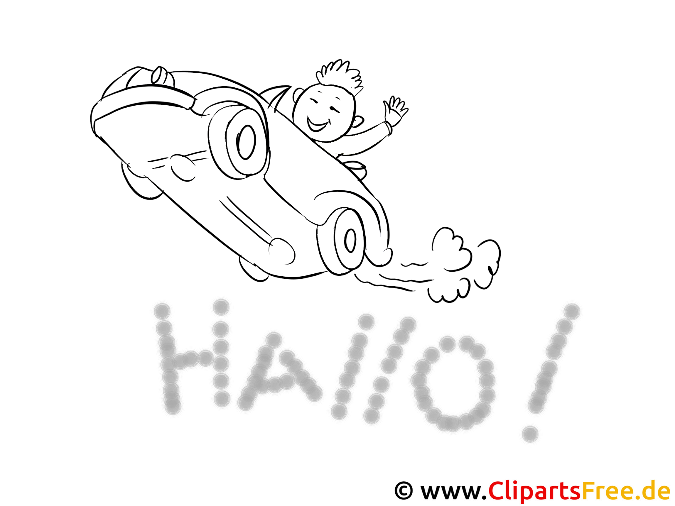 Hier haben wir ein zauberhaftes Ausmalbild mit einem fröhlichen Kind, das in einem rasenden Auto sitzt. Es sieht so aus, als würde es sich mit voller Fahrt ins Abenteuer stürzen! Der Junge hat ein breites, strahlendes Grinsen im Gesicht und winkt fröhlich nach oben, als wäre er der König der Straße. Über ihm schwebt die große, klare Botschaft „HALLO!“, die man direkt beim Ausmalen ins Herz schließen kann. Alles zusammen erweckt ein Gefühl von Freiheit und Spaß – ideal für kleine Auto-Fans!
