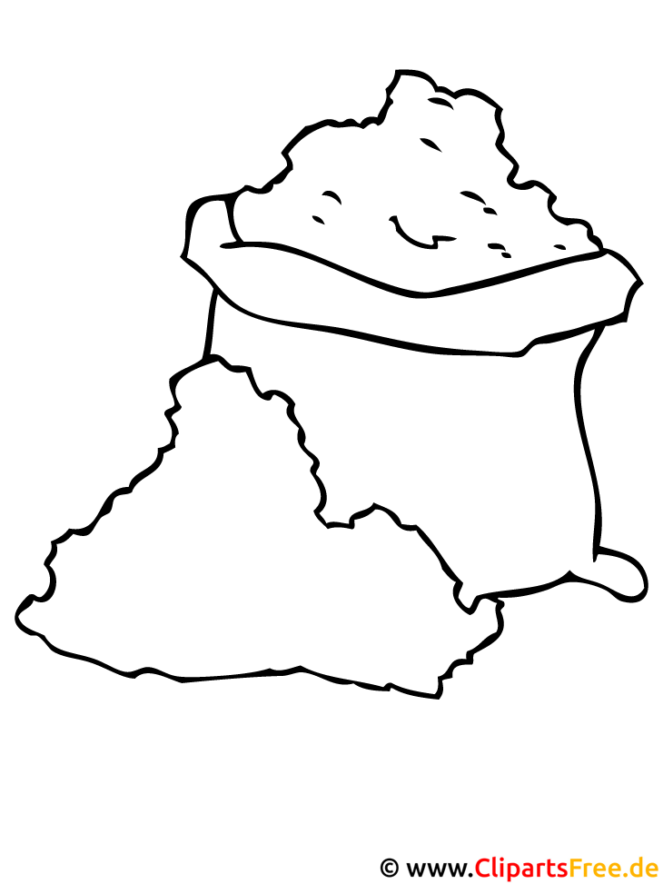 Es gibt da dieses süße Motiv – einen Sack, gefüllt mit etwas Mehl oder Zucker. Die Form ist schön rundlich und sieht fast so aus, als ob sie ein kleines Lächeln versteckt. Daneben liegt ein kleiner Haufen, vielleicht vom Umfüllen. Ein bisschen unordentlich, aber das macht es umso spannender! Man kann sich vorstellen, wie das Mehl leicht durch die Luft fliegt, wenn man den Sack öffnet. Total verspielt und perfekt zum Ausmalen!