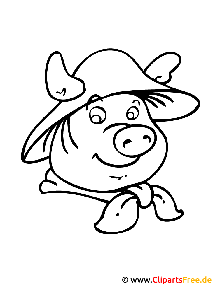 Das Bild zeigt ein fröhliches Schwein, ja genau, ein Schwein! Es trägt einen großen, runden Hut und hat einen netten, verspielten Gesichtsausdruck. Man kann seine strahlenden Augen und das breite Grinsen richtig sehen. Ganz besonders fällt der Halstuch um den Hals auf, was dem ganzen Motiv eine freundliche Note verleiht. So, was denkt ihr? Ist das nicht süß?