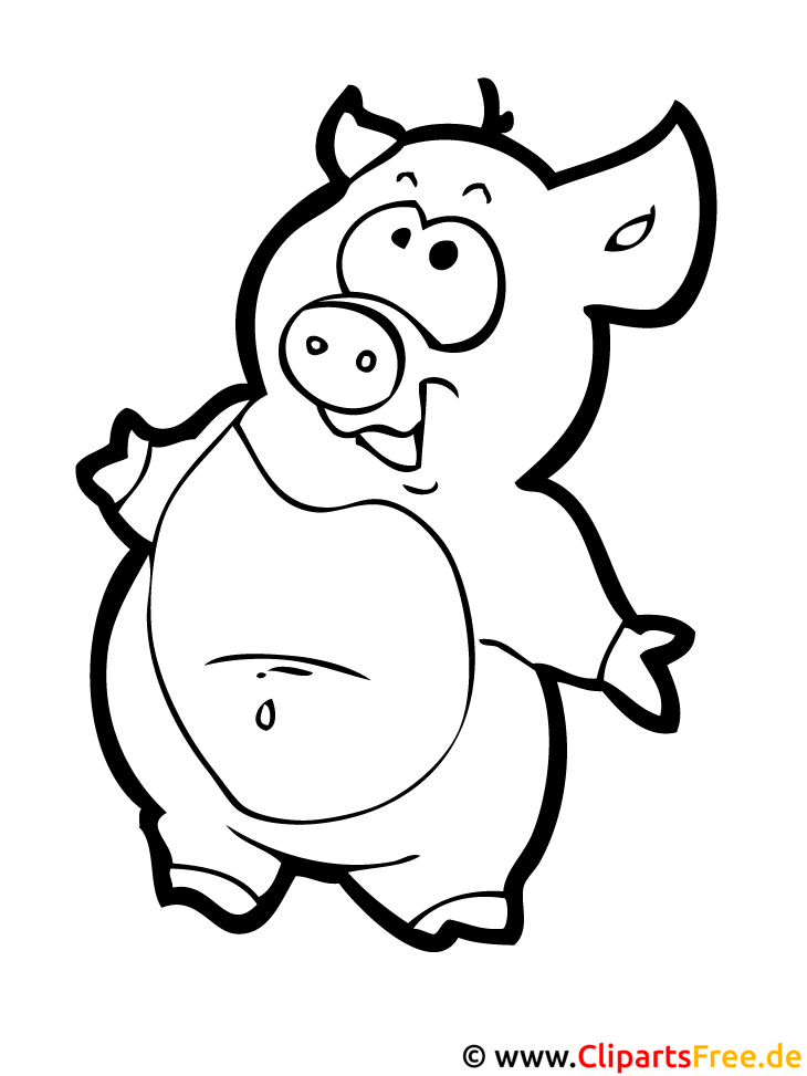 Hier haben wir ein ganz fröhliches Schweinchen! Es steht da mit einem witzigen Gesicht, die großen Augen scheinen wirklich neugierig zu sein. Schaut mal, wie es seine kleinen Ohren gespitzt hat – als würde es jeden Moment etwas Aufregendes hören! Der runde Bauch ist ganz putzig und macht das Schweinchen richtig knuffig. Umrahmt von einer klaren, dicken Kontur, lädt das Bild gerade dazu ein, coloriert zu werden. Vielleicht in Rosa oder mit ein paar bunten Akzenten – ein echtes Vergnügen!