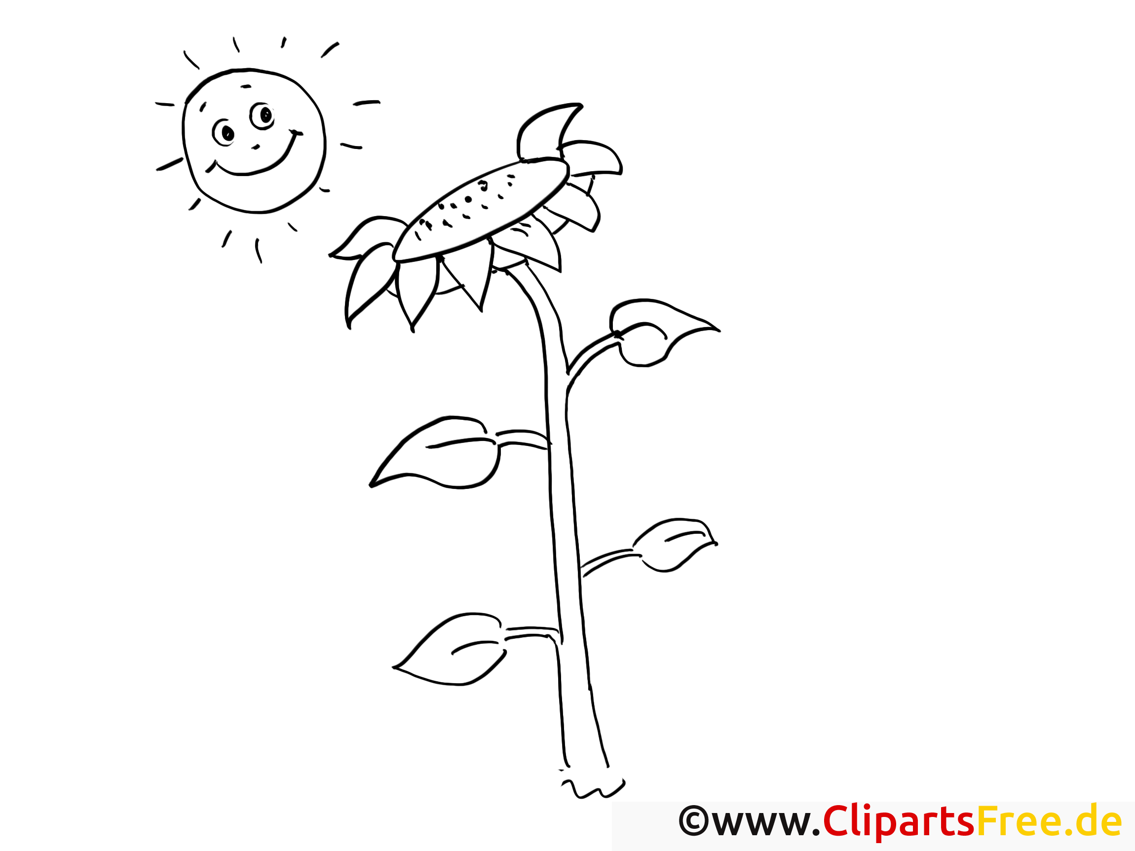 Sonne und Sonnenblume im Feld - Ausmalbilder zum Ausdrucken