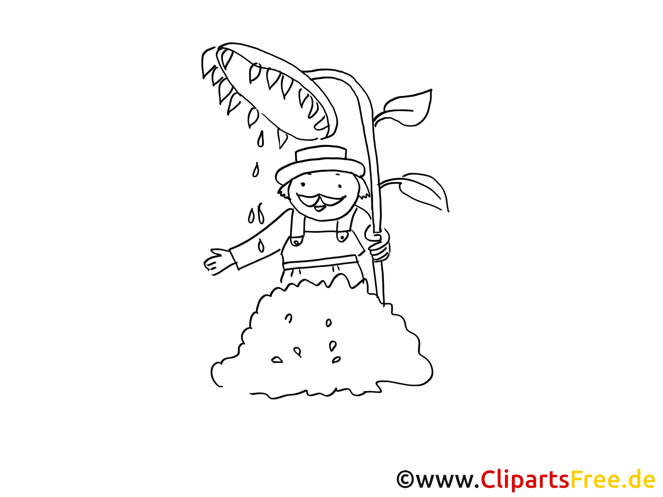 Der Zeichenstil ist wirklich kinderfreundlich und einladend. Die Linien sind ziemlich klar und kräftig, was die Ausmalung super einfach macht. Es gibt viele große Flächen, die darauf warten, bunt ausgefüllt zu werden. Man könnte sagen, es scheint fast wie aus einem Kinderbuch oder einem Malbuch zu stammen. Die Proportionen sind etwas verspielt – die Pflanze ist riesig im Vergleich zu dem Gärtner! Ehrlich gesagt, gerade das macht die ganze Sache so witzig und charmant. Ich finde das einfach toll!