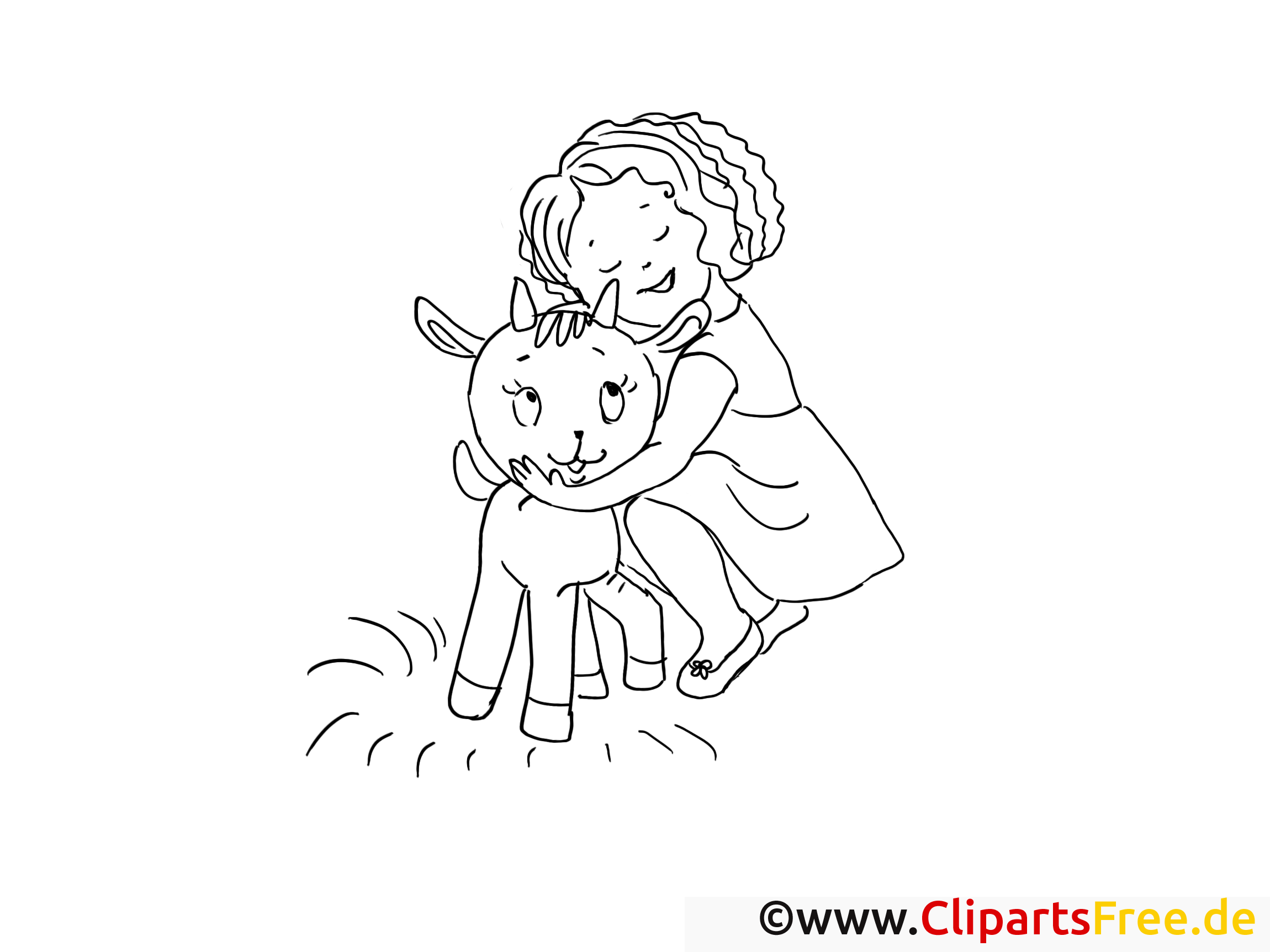 Der Zeichenstil ist ganz klar und einfach, fast wie handgezeichnet. weißt du, Die Linien sind nicht perfekt – und das macht es wunderbar! Es gibt eine gewisse Verspieltheit in der Darstellung, die das Bild lebendig wirken lässt. Das Zicklein schaut freundlich, und das Ethos der Umarmung spiegelt pure Herzenswärme wider. Die wenigen Details, die vorhanden sind – der leicht geschwungene Schwanz des Zickleins oder die Locken des Mädchens – bieten die Möglichkeit, kreativ zu sein. Wenn die Kids dieses Bild ausmalen, können sie ihrer Fantasie freien Lauf lassen!