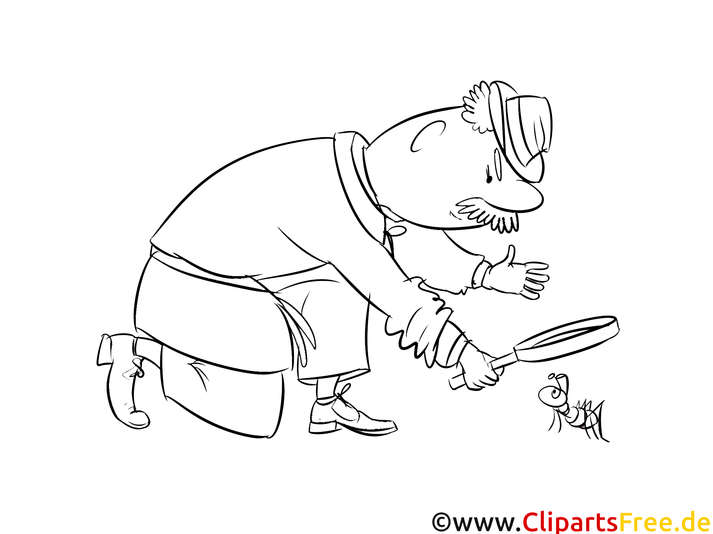 Ameise Detektiv Bild, Clipart, Illustration zum Ausmalen kostenlos