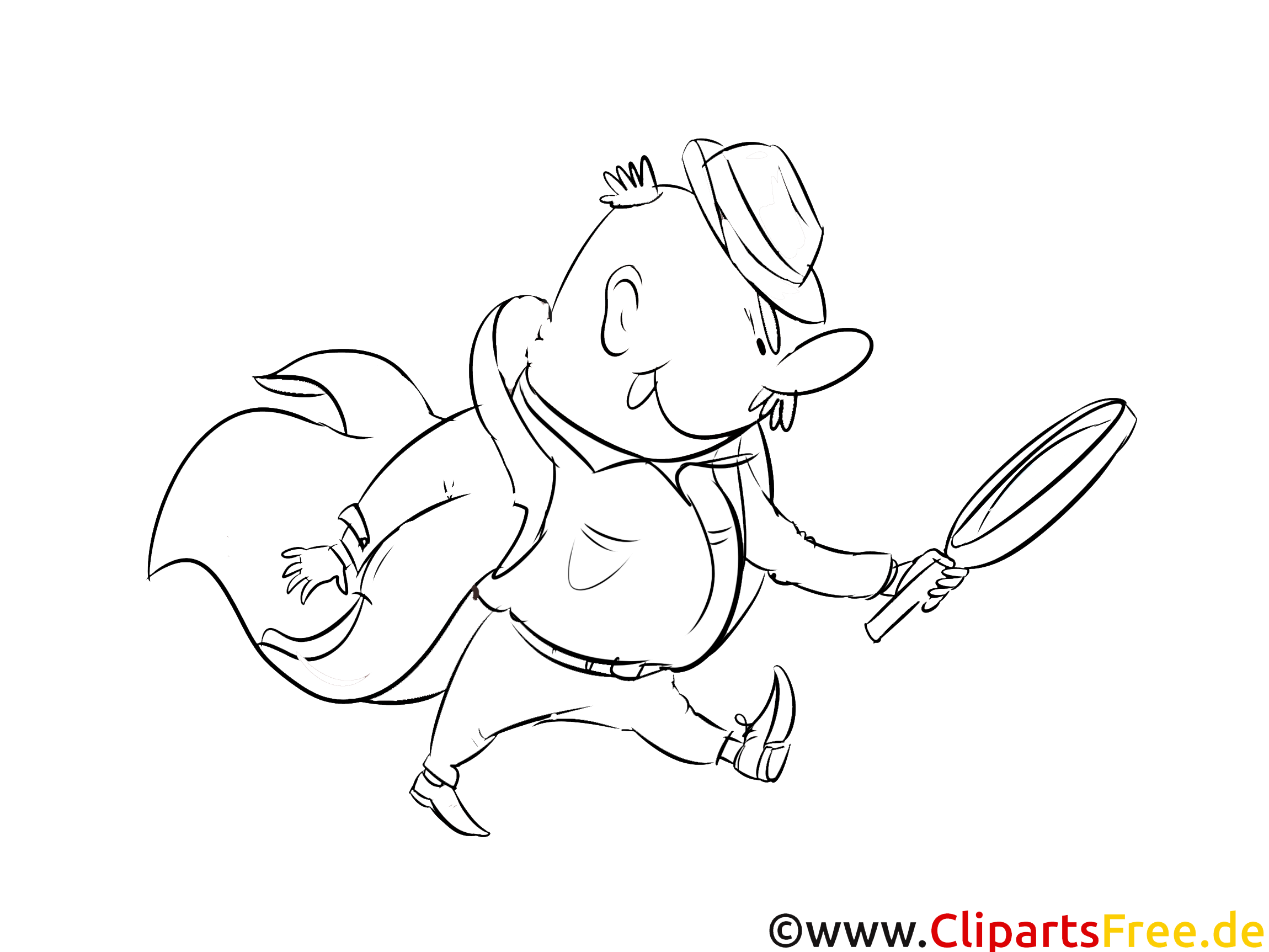 Detektiv Bild, Clipart, Illustration zum Ausmalen kostenlos