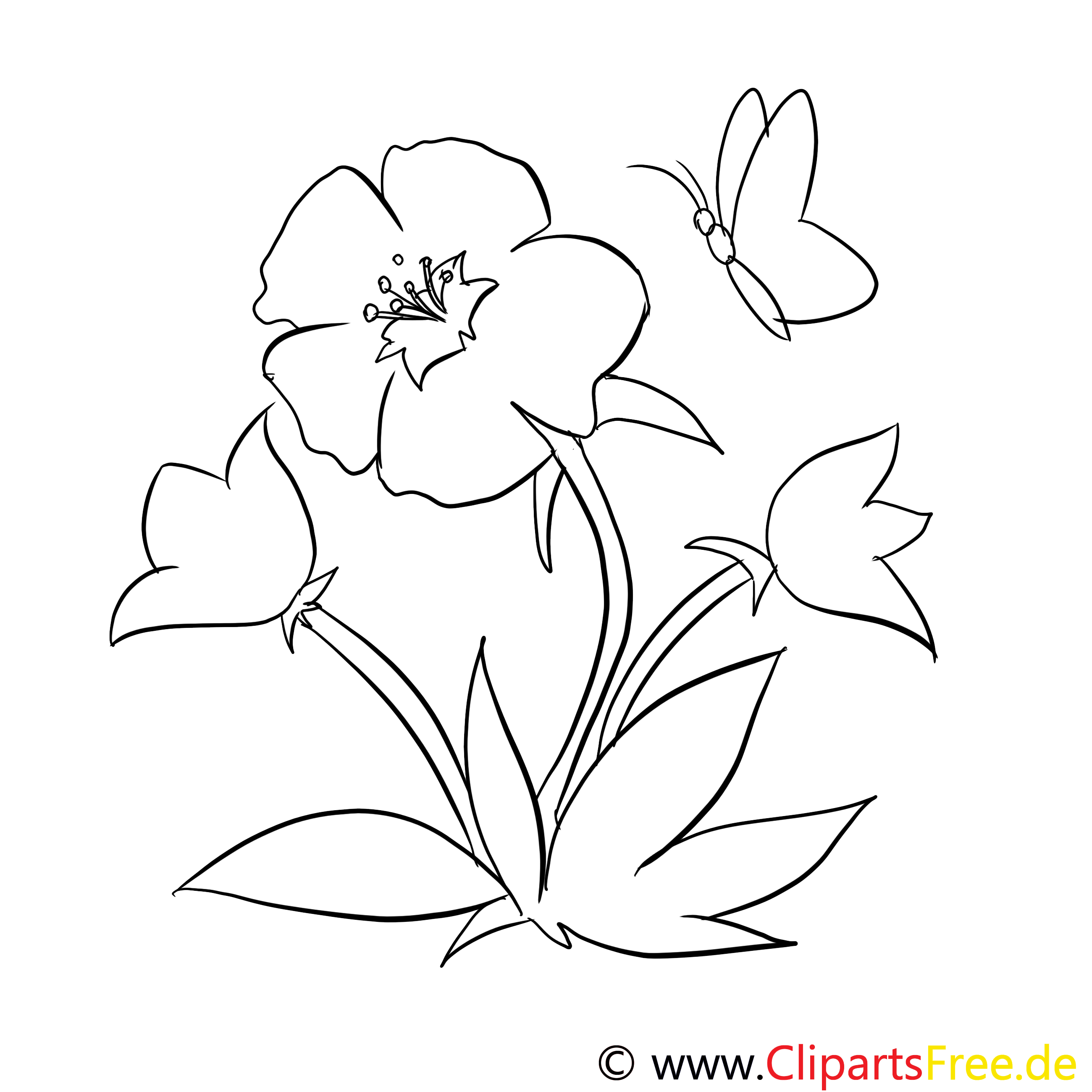 Das Ausmalbild zeigt eine wunderschöne Blüte mit zarten Blütenblättern, die gleich einem kleinen Farbenspiel im Frühling aussieht. Neben der Hauptblume schwirrt ein niedlicher Schmetterling, der lebhafte Aromen von Freiheit und Natur verbreitet. Umgeben von zarten grünen Blättern, wecken die verschiedenen Blumen das Interesse, das Bild nicht nur zu betrachten, sondern auch zu gestalten. Man kann sich vorstellen, wie die Farben in den Blüten leuchten und der Schmetterling über die Blumen tanzt.