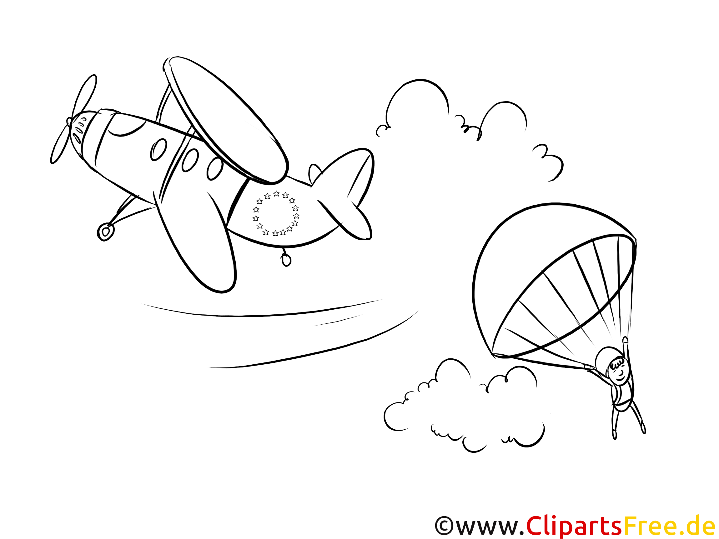Fallschirmspringer Ausmalbild zum Ausdrucken, Bild gratis