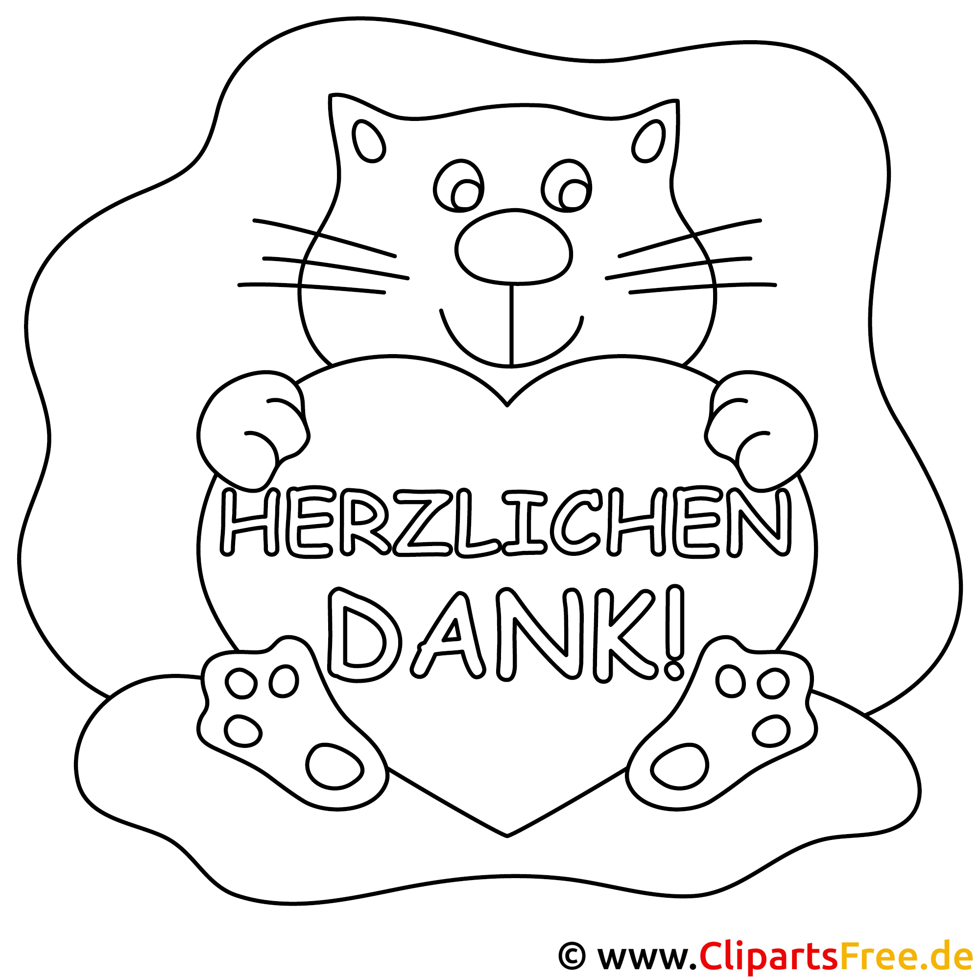 Das Ausmalbild zeigt eine süße Katze, die lächelnd ein großes Herz in ihren Pfoten hält. Darauf steht „HERZLICHEN DANK!“ in großen, freundlichen Buchstaben. Miau! Die Katze hat große, neugierige Augen und wirkt einfach zum Knuddeln. Sie sitzt auf einem sanften Wellenrest, was dem Bild eine fröhliche Tiefe verleiht. Ein tolles Motiv, um Dankbarkeit zu zeigen und das Herz zu erfreuen!