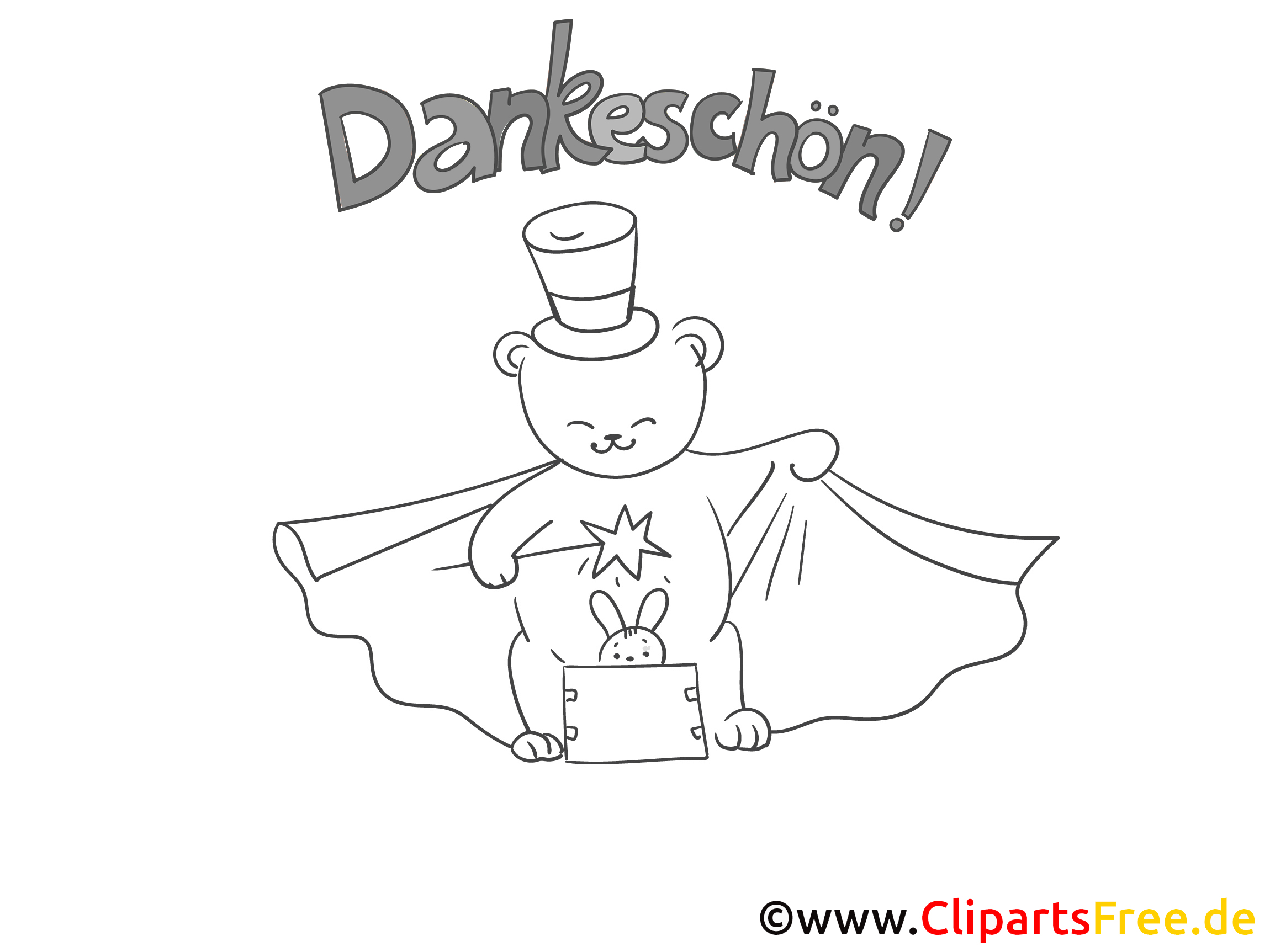 In diesem zauberhaften Ausmalbild sehen wir einen fröhlichen Bären, der in einem tollen Zauberer-Outfit steckt. Der Bär trägt einen hohen Zylinder und hat einen großen, bunten Umhang umgelegt. Es scheint, als ob er gerade einen Trick vorführt, denn aus seiner Hand kommt ein lächelndes Kaninchen oder ein Häschen, das neugierig aus einer kleinen Box schaut. Über dem Bären schwebt das Wort „Dankeschön!“, was die ganze Szene besonders herzlichen macht. halt, Das Motiv strahlt Freude und Magie aus – perfekt für jeden Anlass, um einfach mal Danke zu sagen!