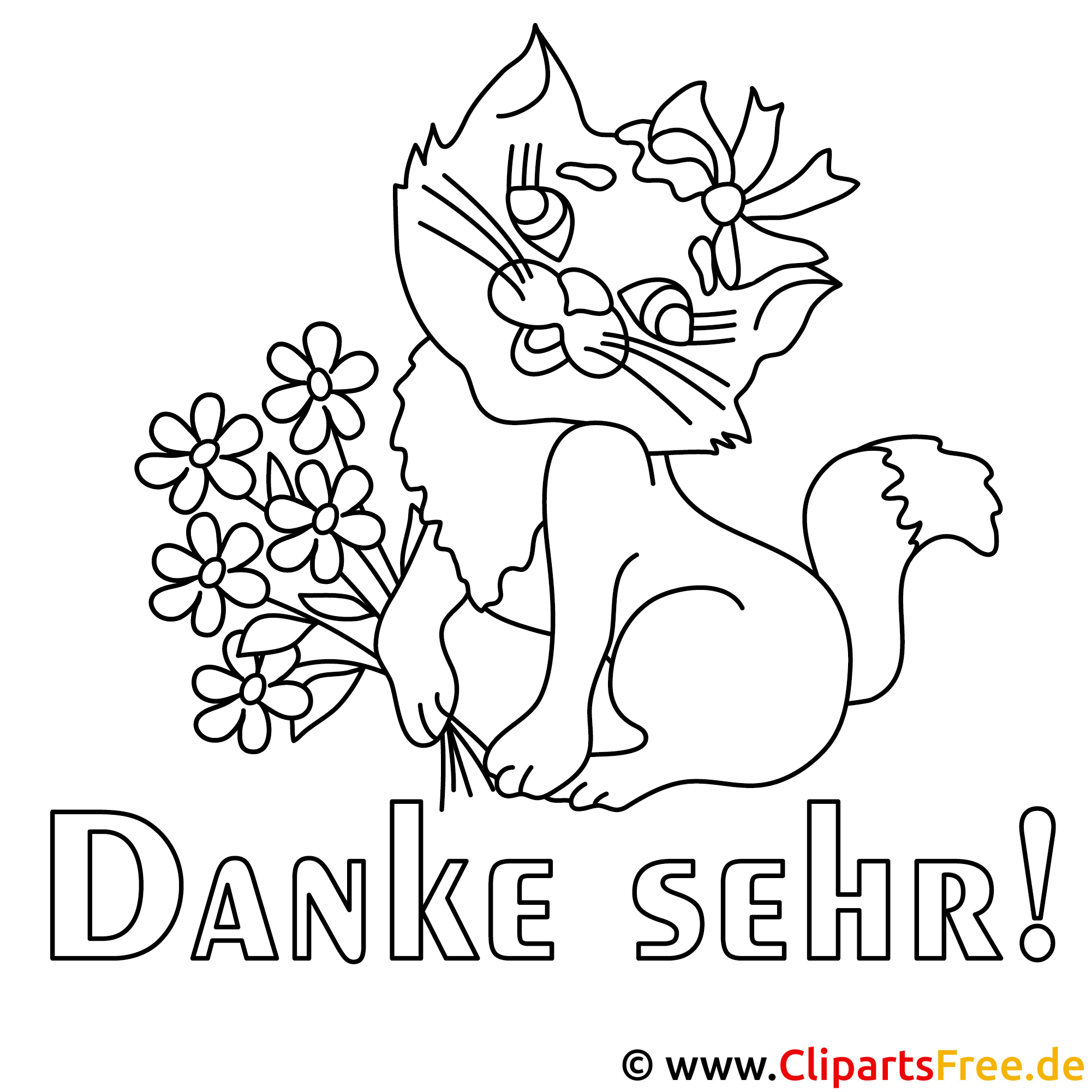 Vor dir steht ein zauberhaftes Ausmalbild! Es zeigt eine niedlich lächelnde Katze, die mit einem hübschen Sträußchen Blumen spielt. Die kleine Katzenfigur hat ein verspieltes Aussehen und eine große, runde Schnauze, die einfach zum Kitzeln einlädt. Die große Schleife auf ihrem Kopf sorgt für einen besonders süßen Look! Unter der Katze steht ein fröhlicher Schriftzug: „Danke sehr!“. Das Motiv strahlt Freundschaft und Dankbarkeit aus – ideal, um jemandem zu zeigen, wie viel er dir bedeutet.