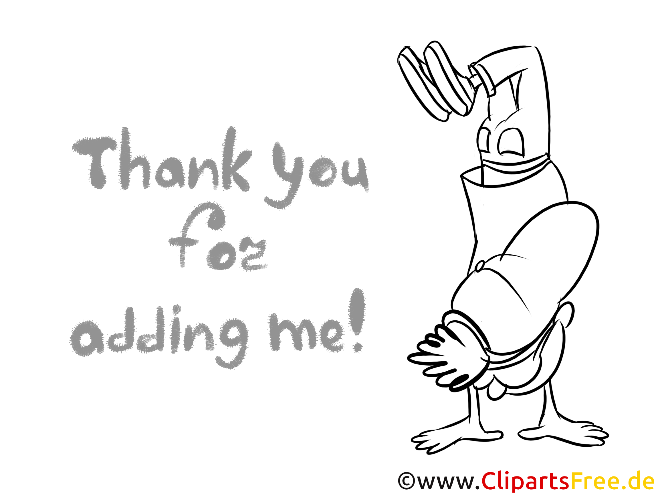 Das Motiv, das du hier siehst, ist eine wilde und zugleich lustige Figur, die richtig gute Laune versprüht. Die Figur hat große, fröhliche Augen – man könnte fast sagen, sie blitzen vor Freude! Die Arme sind ganz übertrieben geformt, was dem ganzen Bild einen skurrilen Charme verleiht. Dazu kommt der flotte Spruch „Thank you for adding me!“, der in einer einladenden Schriftart dahinter steht. Ehrlich gesagt, man kann gar nicht anders, als beim Anblick dieser Figur zu grinsen. Die Kombination aus dem aufregenden Design und dem netten Spruch macht das Ganze besonders lebendig – einfach zum Ausmalen einladend!