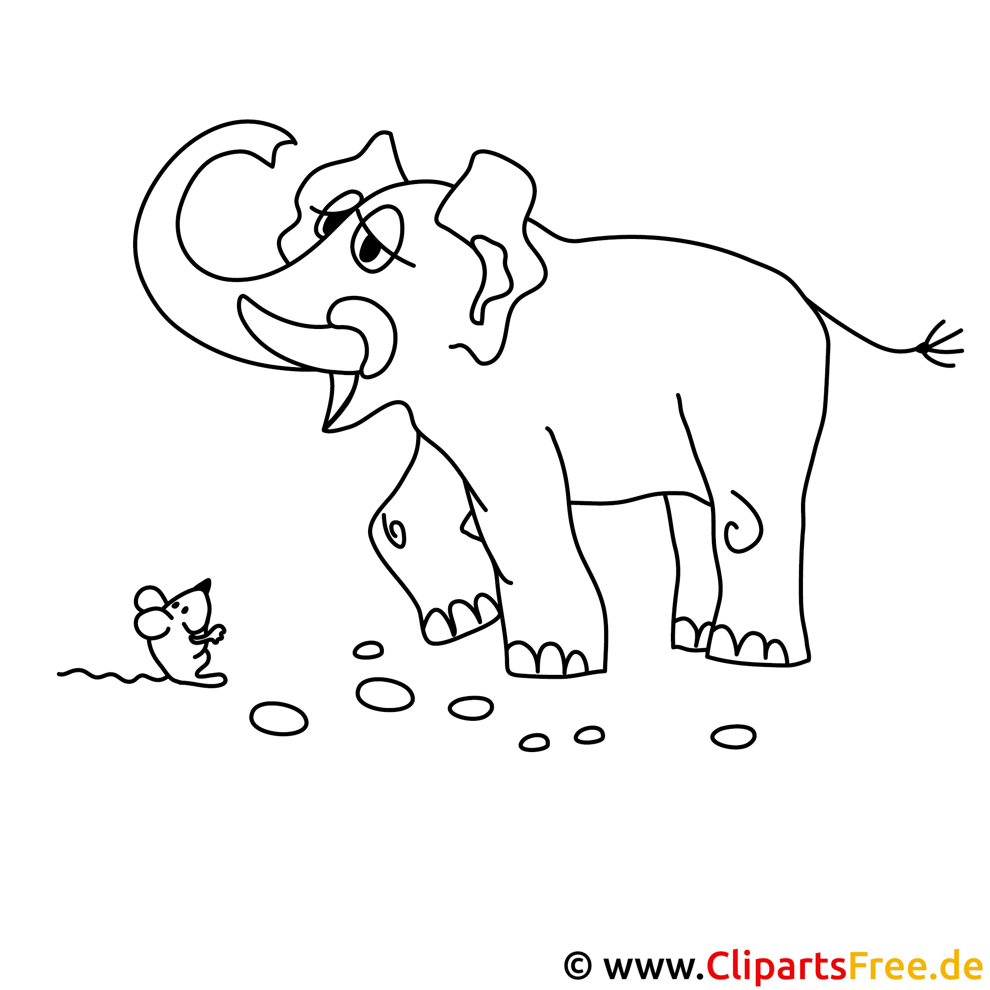 Dieses Ausmalbild zeigt eine lustige Szene mit einem großen Elefanten und einer kleinen Maus. Die Maus sieht ganz neugierig aus, während der Elefant mit seinem langen Rüssel im Bild prahlt. Zwischen den beiden liegen ein paar runde Steine, die dem Bild eine interessante Tiefe verleihen. Der Elefant hat ein verspieltes, vielleicht sogar freches Gesicht. Man kann die Spannung zwischen den beiden Tieren fast spüren.... Die großen Formen laden Kinder dazu ein, kreativ zu sein und fantasievoll mit Farben zu experimentieren. Es ist eine klare, charmante Darstellung, die jede Menge Spaß zum Ausmalen verspricht.
