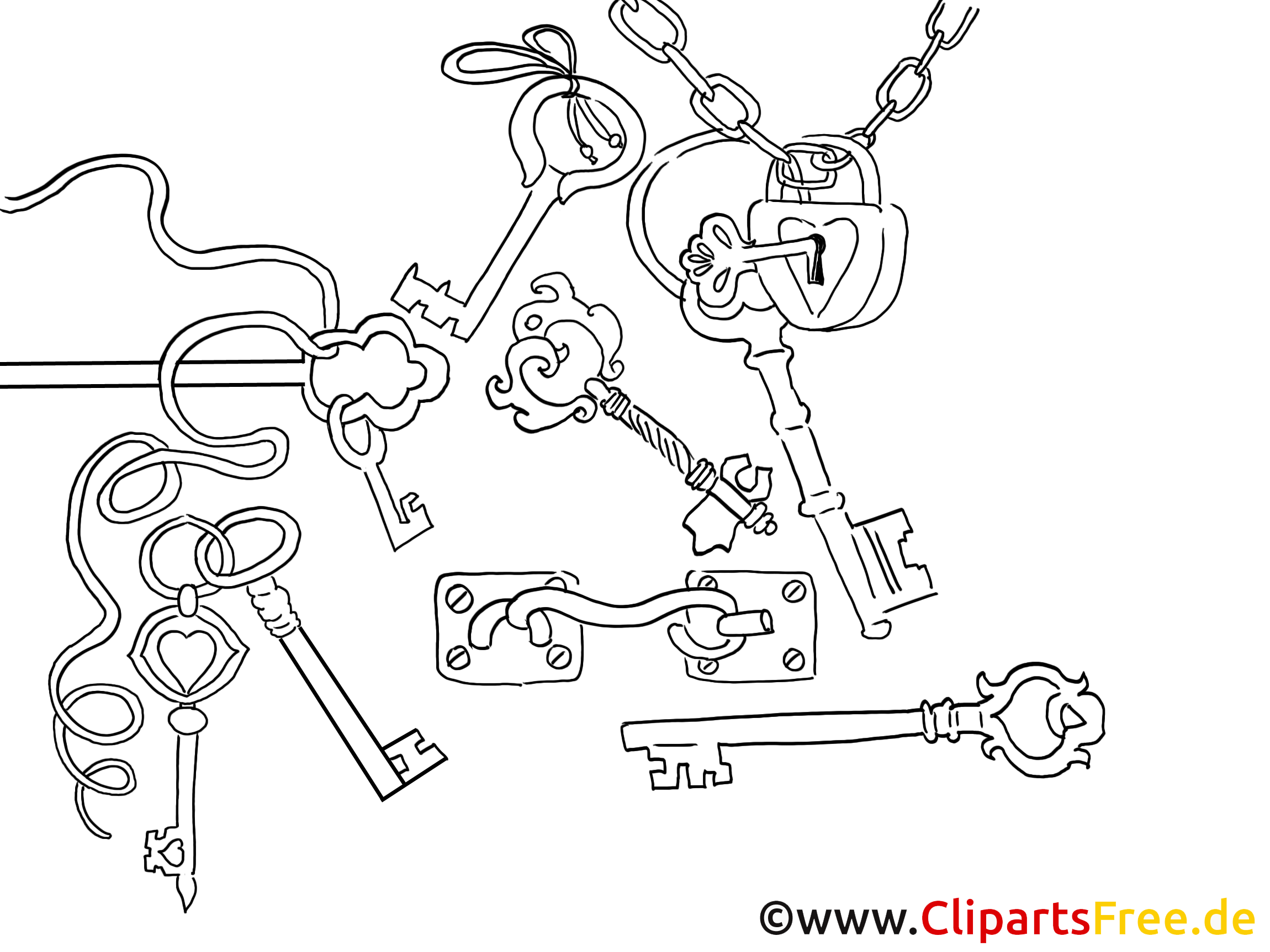 Schau mal, in diesem Malbild siehst du eine spannende Sammlung von Schlüsseln! Sie sind ganz unterschiedlich, von großen bis zu kleinen – echt beeindruckend, oder? Einige haben hübsche Verzierungen, andere sind ganz schlicht. Es gibt sogar einen Schlüssel, der an einer Kette hängt! Das Bild regt die Fantasie an, denn man fragt sich sofort: Was könnte dieser Schlüssel öffnen? Vielleicht eine geheimnisvolle Tür oder eine Schatzkiste? Auf jeden Fall lädt das Ausmalbild dazu ein, kreativ zu werden und die Schlüssel kunterbunt zu gestalten.