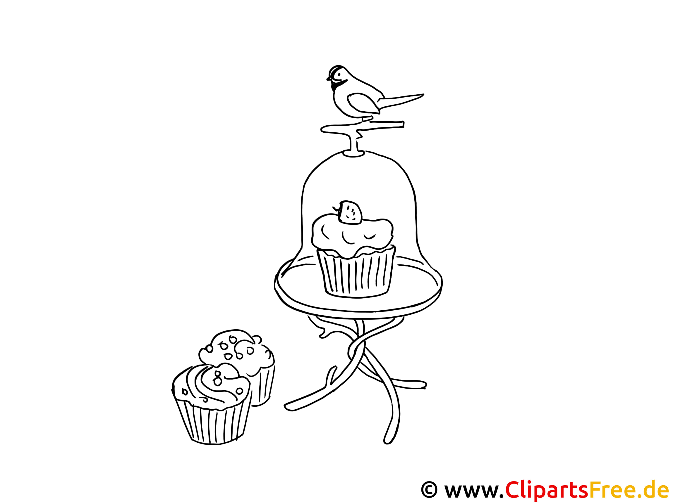 Vogel und Kuchen Bild - Bilder zum Ausmalen und Drucken