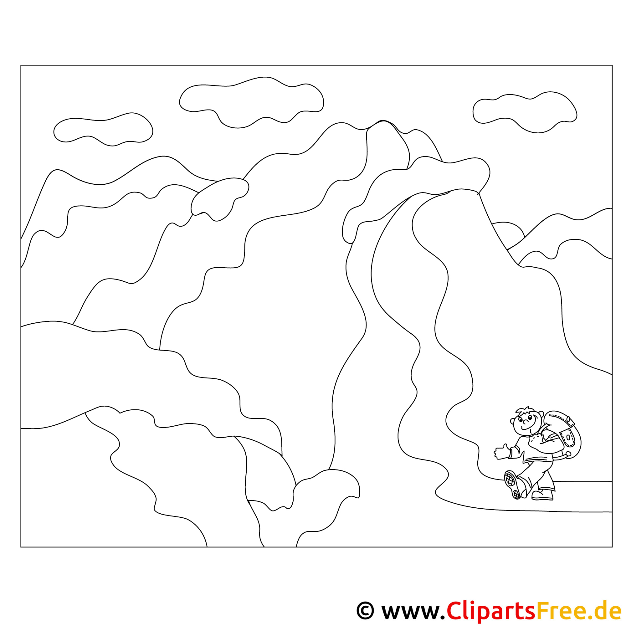 Das Ausmalbild zeigt eine fröhliche kleine Wanderung in den Bergen. Ein Abenteurer mit einem Rucksack lächelt, während er einen schmalen Weg entlanggeht. Die grandiosen Berge um ihn herum sind sanft geschwungen, und Wolken treiben gemächlich über den Himmel. So eine Szenerie regen die Fantasie an, oder? Man hat sofort Lust, mitzumachen und die Natur zu erkunden. weißt du, Ganz schön spannend, diese Kombination aus Abenteurer und Landschaft!