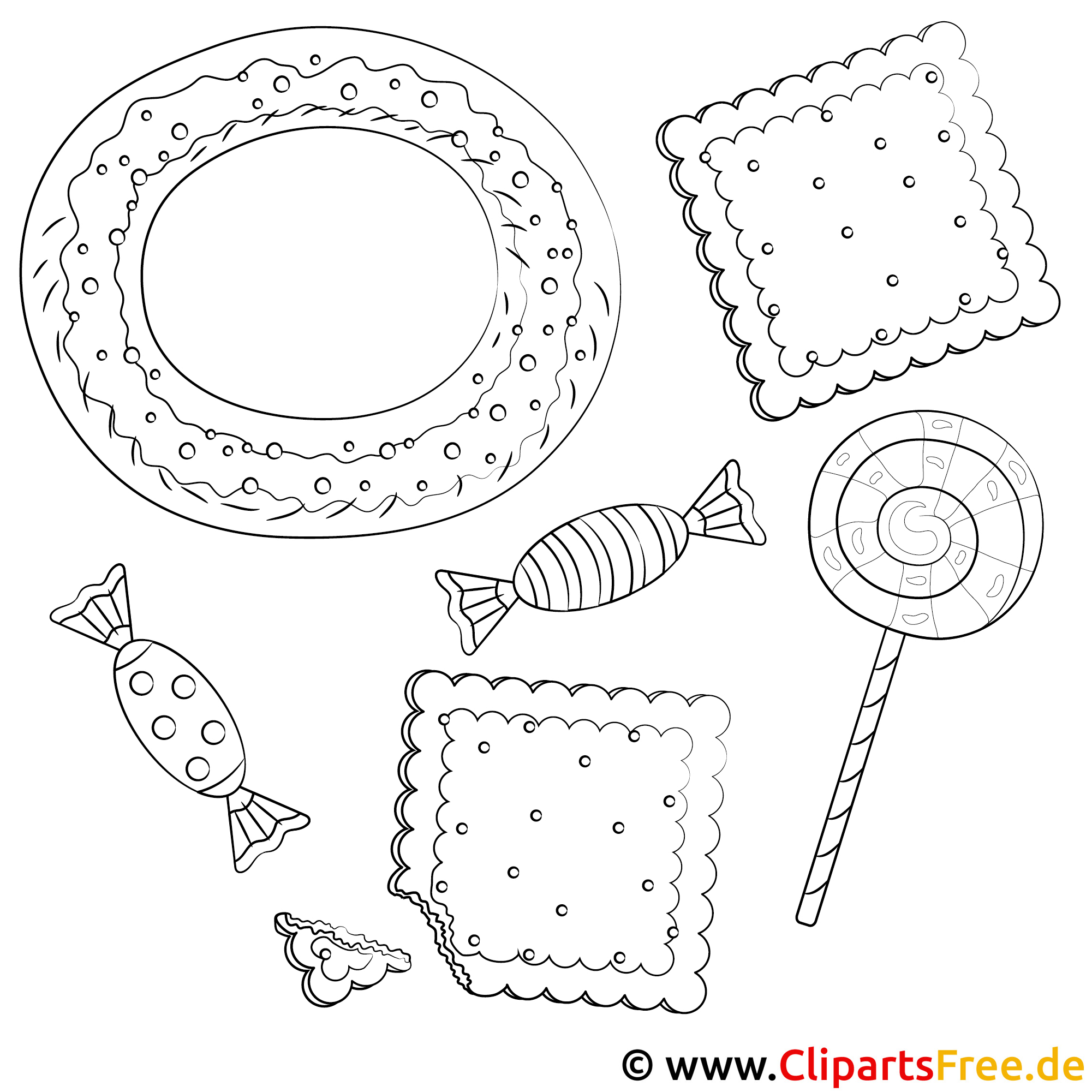 Auf dieser Malvorlage präsentieren sich leckere Süßigkeiten in einer bunten Assemblage. Da liegt ein runder Keks mit bunten Streuseln, gleich daneben ein großes, viereckiges Gebäck, das nur darauf wartet, in leuchtenden Farben zum Leben erweckt zu werden. Außerdem gibt's hier eine bunte Lutschertüte, die einige kleine Bonbons um sich hat. Jedes Teil hat seinen eigenen Charme und vermittelt sofort ein Gefühl von Freude und Unbeschwertheit. Ehrlich gesagt, ist es ein absolutes Vergnügen, all diese zuckersüßen Leckereien auszumalen!