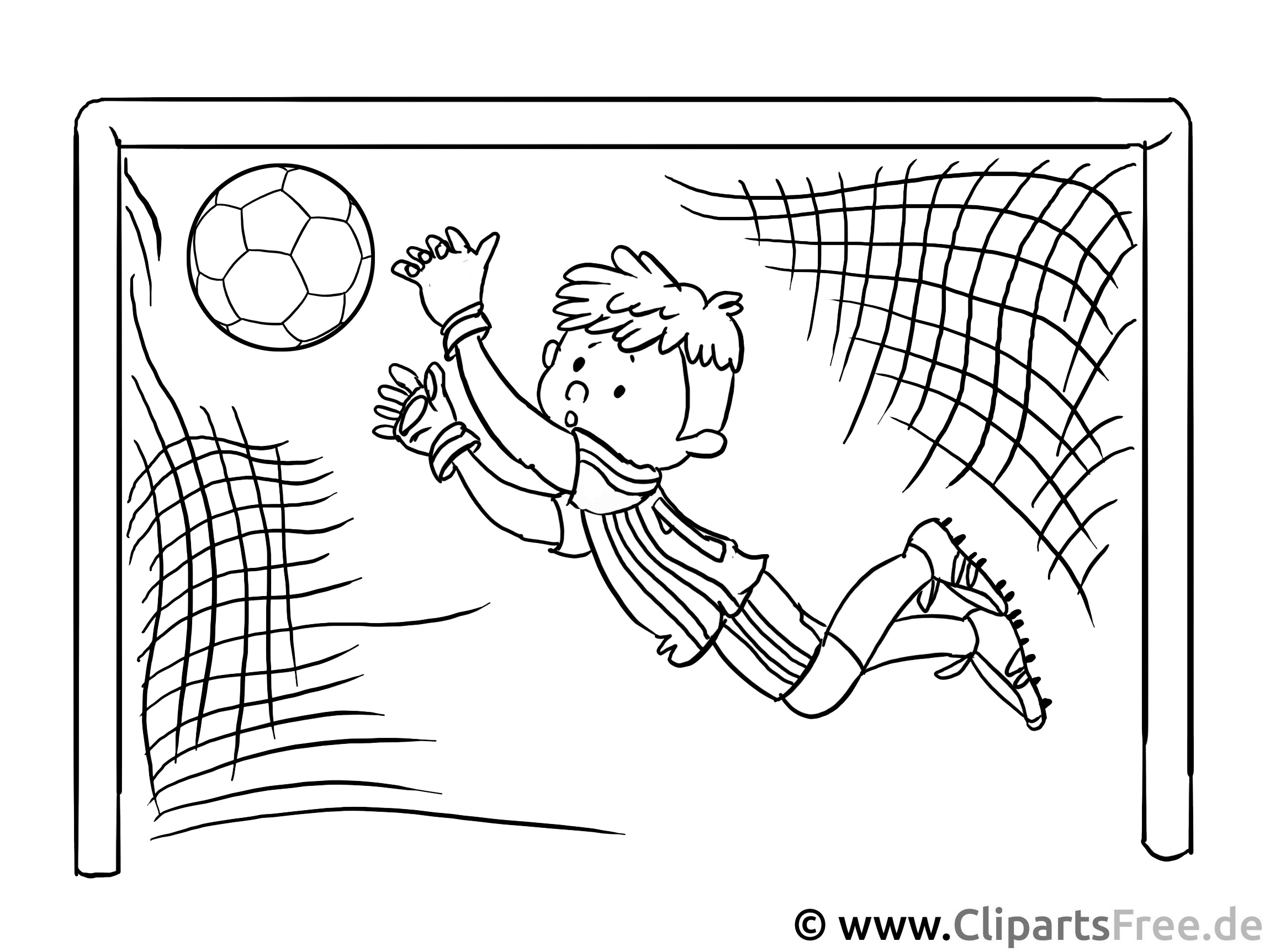 Hier haben wir ein tolles Bild zum Ausmalen, das einen Jungen in Aktion zeigt! Er ist im Tor – ja genau, er ist der Torwart und versucht gerade, einen Fußball abzufangen. Die Szene ist richtig dynamisch: Man sieht, wie er sich streckt und seine Arme in die Höhe reißt, während der Ball direkt auf ihn zu fliegt. Die Begeisterung in seinem Gesicht – echt klasse! Der Hintergrund ist auch spannend, mit dem Fußballnetz und ein bisschen Bewegung, was dem Bild eine lebendige Atmosphäre verleiht. Ein echtes Erlebnis für junge Fußballfans.