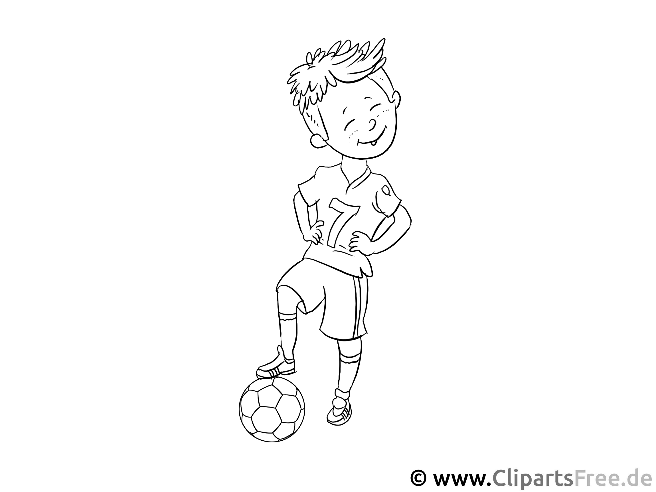 Junge spielt Fussball - Ausmalbilder für Schule zum Ausdrucken