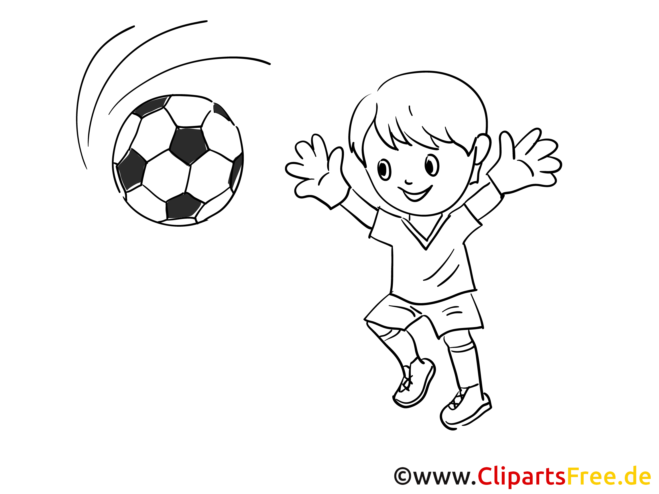 Junge spielt Fussball Malvorlage gratis