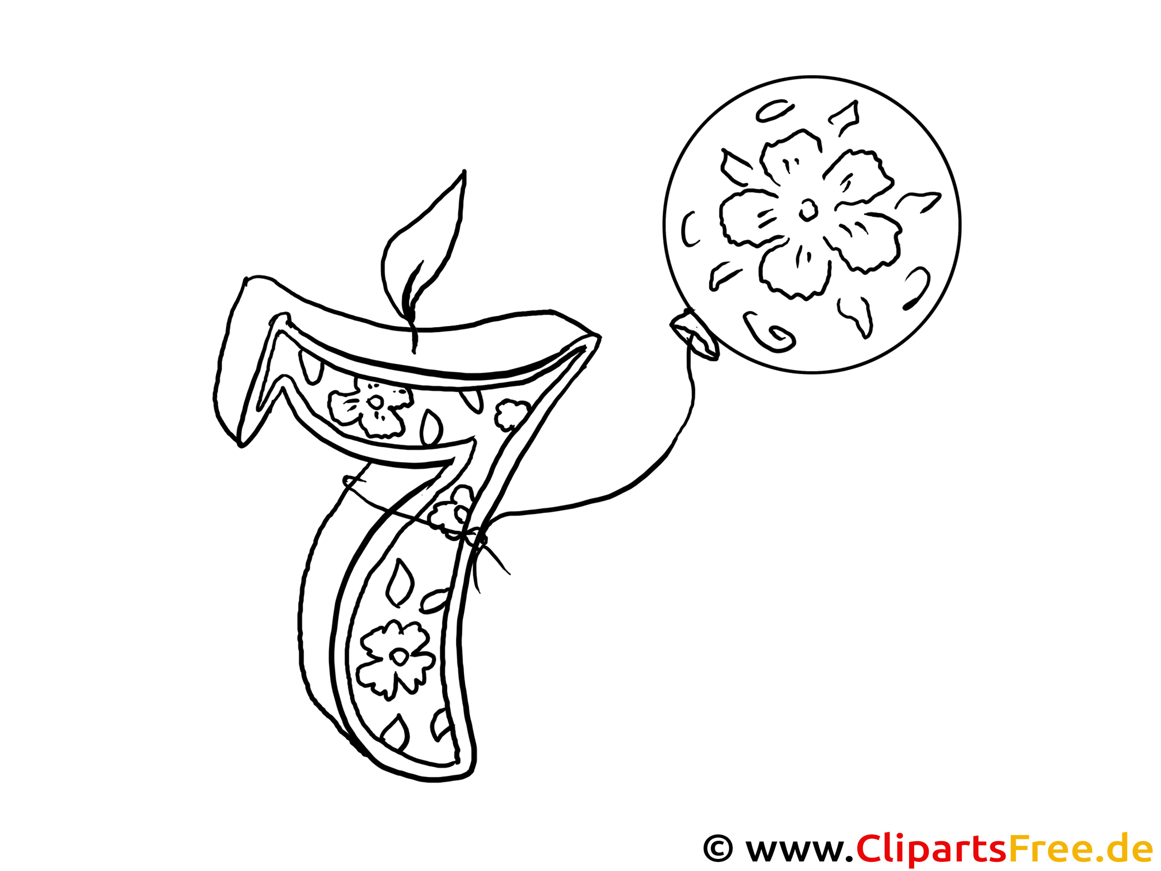 7 Geburtstag Bild Vorlage zum Ausmalen