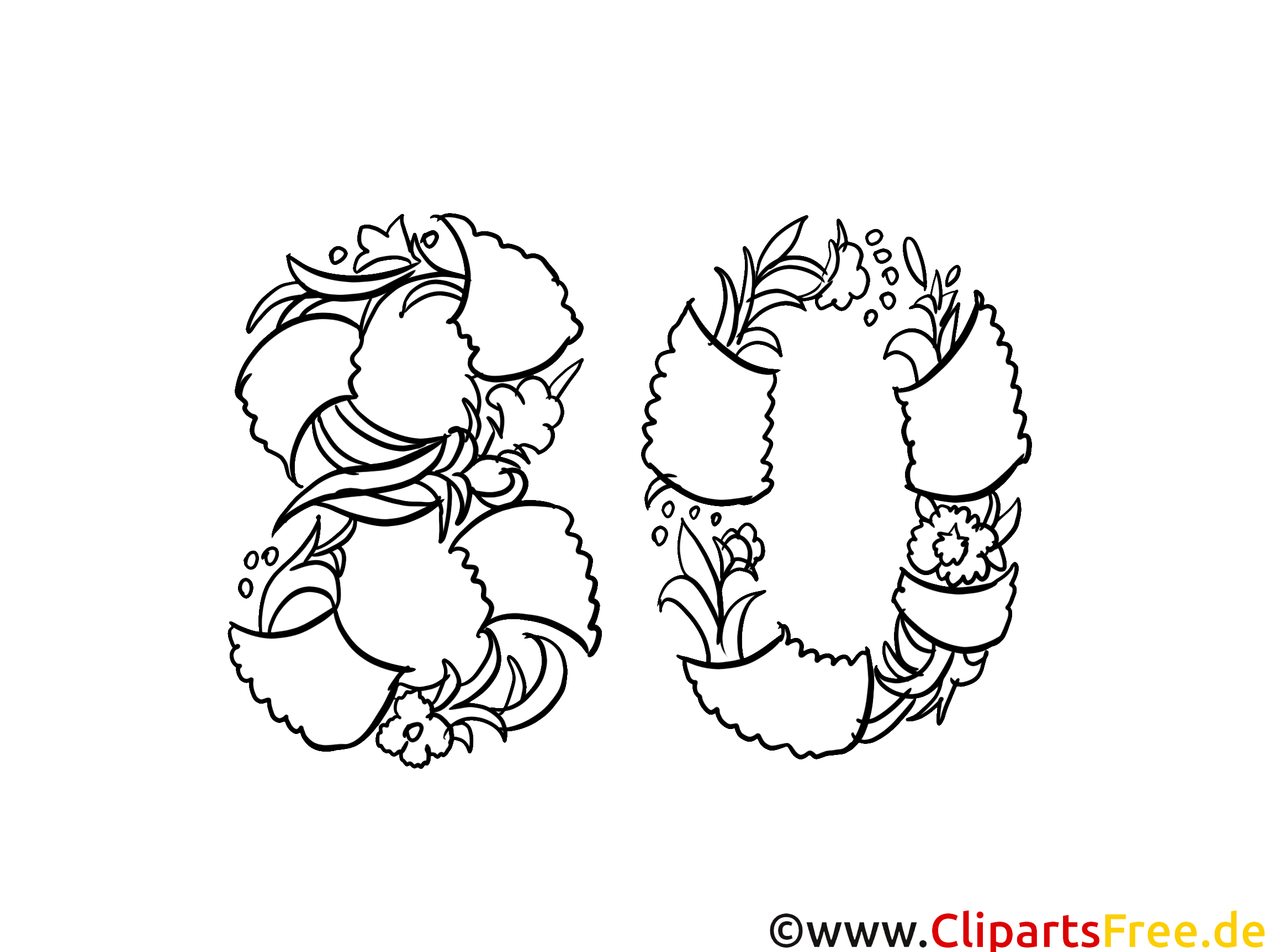80 Jahre Geburtstag - Ausmalbilder zum Drucken