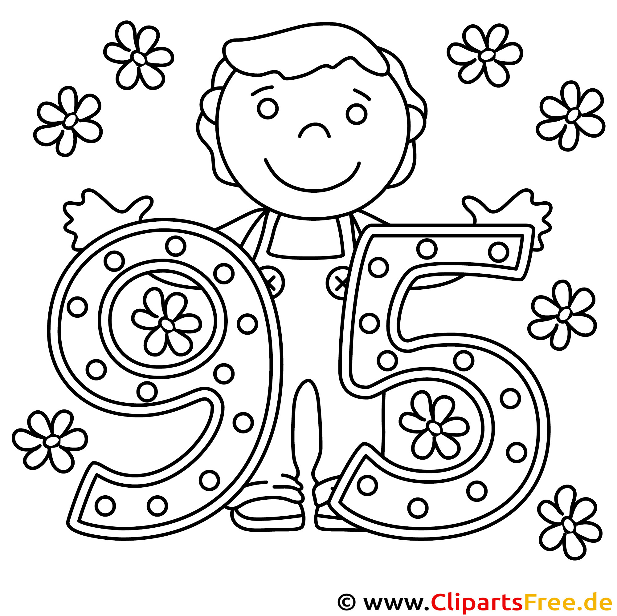 Hier präsentiert sich ein fröhliches Bild, das perfekt für eine Malvorlage ist! Ein kleiner, lächelnder Junge steht da, ganz stolz, mit den großen Zahlen „95“ in seiner Umgebung. Er hat die Arme weit ausgebreitet, als ob er die ganze Welt umarmen möchte. Um ihn herum blühen kleine, zarte Blumen, die aus dem Bild herausstrahlen – das bringt ein bisschen Frühling in die Farben. Die Auswahl an Zahlen und die umgebenden Details laden dazu ein, kreativ zu werden und das Bild mit lebendigen Farben zu füllen.