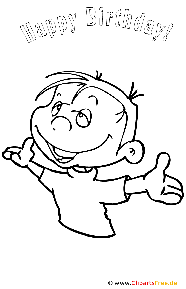 Das Ausmalbild zeigt einen fröhlichen Jungen, der beide Arme weit geöffnet hat, so als würde er die Welt umarmen. Er strahlt förmlich vor Freude – ja, es ist sein Geburtstag! Oben prangt in fröhlichen Buchstaben „Happy Birthday!“. Diese Kombination macht das Bild perfekt für kleine Geburtstagsüberraschungen oder einfach nur für viel gute Laune beim Ausmalen. Die großen Flächen sind ideal, um hier richtig kreativ zu werden und die tollsten Farben zu nutzen. hm, Was wird wohl die Lieblingsfarbe des kleinen Künstlers sein? Blau, grün oder ganz vielleicht pink?