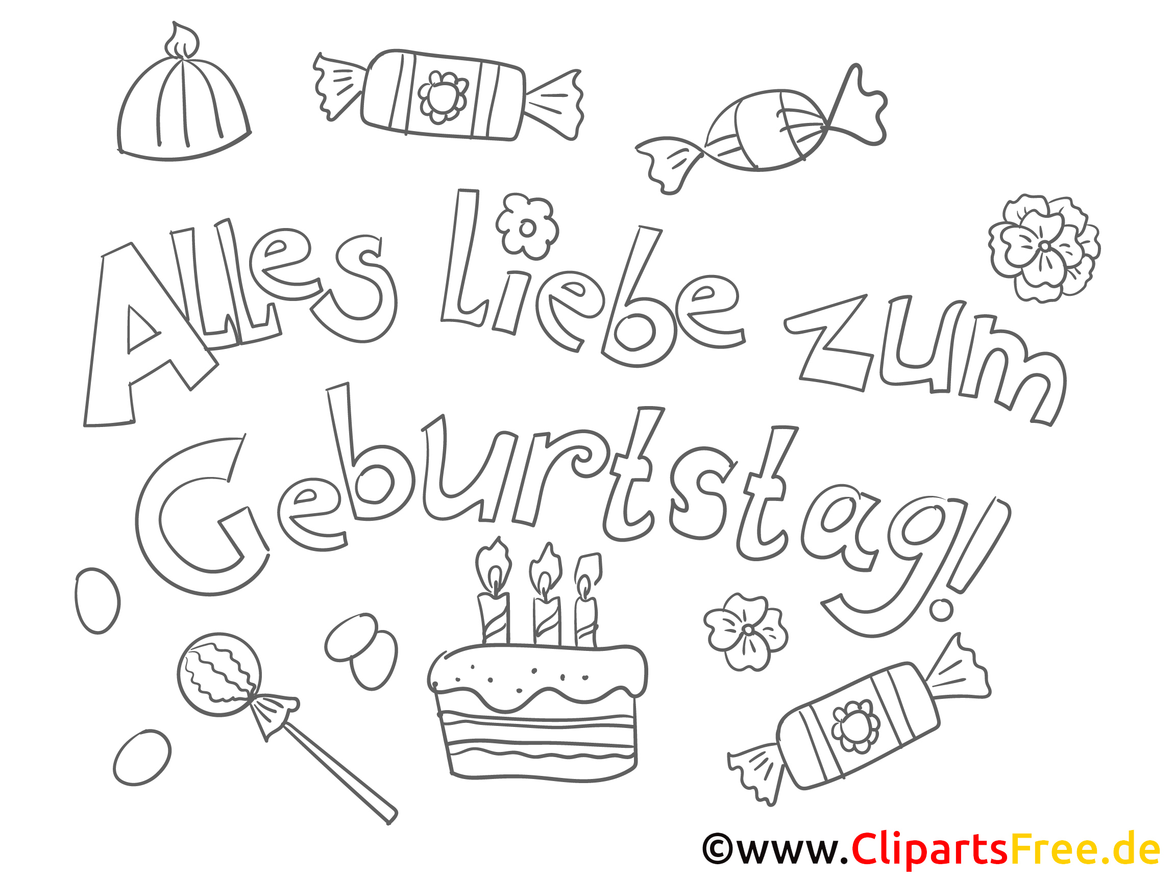 Oh, dieses Bild zum Ausmalen ist wirklich super bunt! Es zeigt all die tollen Dinge, die zu einem Geburtstag gehören. Da gibt es Kuchen mit Kerzen – die leuchten gewiss! Außerdem sind da mehrere süße Bonbons und ein paar bunte Luftballons. Und die Schrift, die „Alles Liebe zum Geburtstag!“ sagt, ist wirklich fröhlich und einladend gestaltet. Die Blumen, naja, die machen das ganze Bild gleich noch fröhlicher. halt, Jeder, der das sieht, bekommt bestimmt gute Laune!