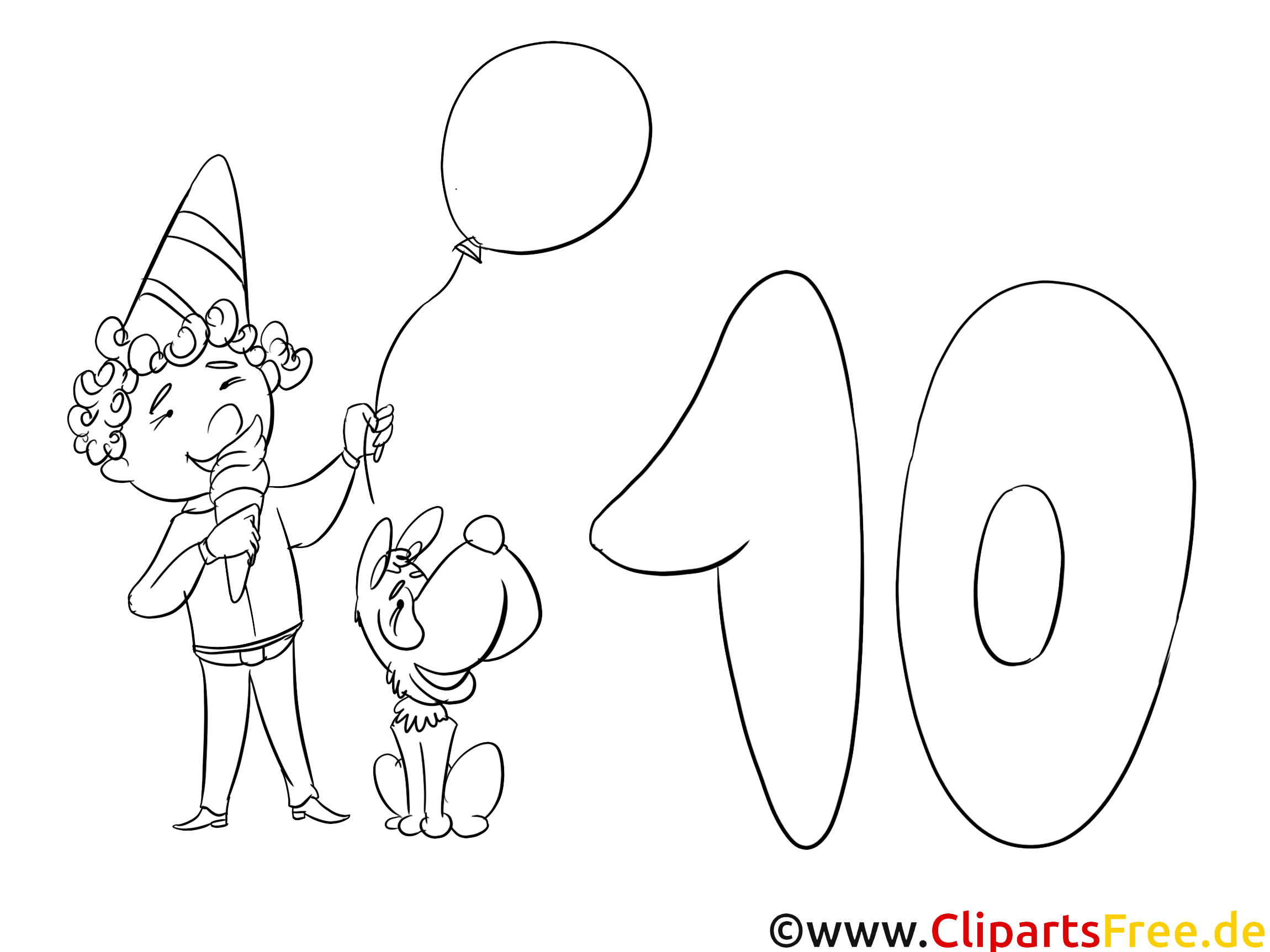Das Motiv zeigt ein fröhliches Kind, das einen bunten Luftballon hält. Klingt das nicht schön? Neben ihm steht ein kleiner, neugieriger Hund, der ganz aufmerksam schaut. Der Hund sieht richtig süß aus, mit seinen großen Augen und dem strubbigen Fell. Und dann ist da noch die große Zahl „10“, die im Bild prangt. Super, um das Zehnte geburtstagsfeier zu feiern, oder? Mit dieser Malvorlage wird das Ausmalen zu einem kreativen Erlebnis! Ideal für alle kleinen Künstler, die gerne Farbe ins Spiel bringen.