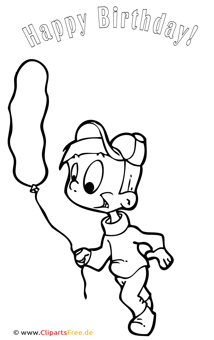 Das Ausmalbild zeigt einen fröhlichen Jungen, der in seiner Hand einen bunten Luftballon hält. Er trägt eine coole Kappe und ein lässiges T-Shirt, was ihn total entspannt wirken lässt. Die Augen strahlen vor Freude, und man kann förmlich die Begeisterung spüren! Über ihm steht in auffälligen Buchstaben "Happy Birthday!" – ganz klar, dieser Junge ist bereit für einen Geburtstagsfeier. Das Bild ist lebhaft und perfekt für alle kleinen Malfans, die gerne zur Feier beitragen möchten.
