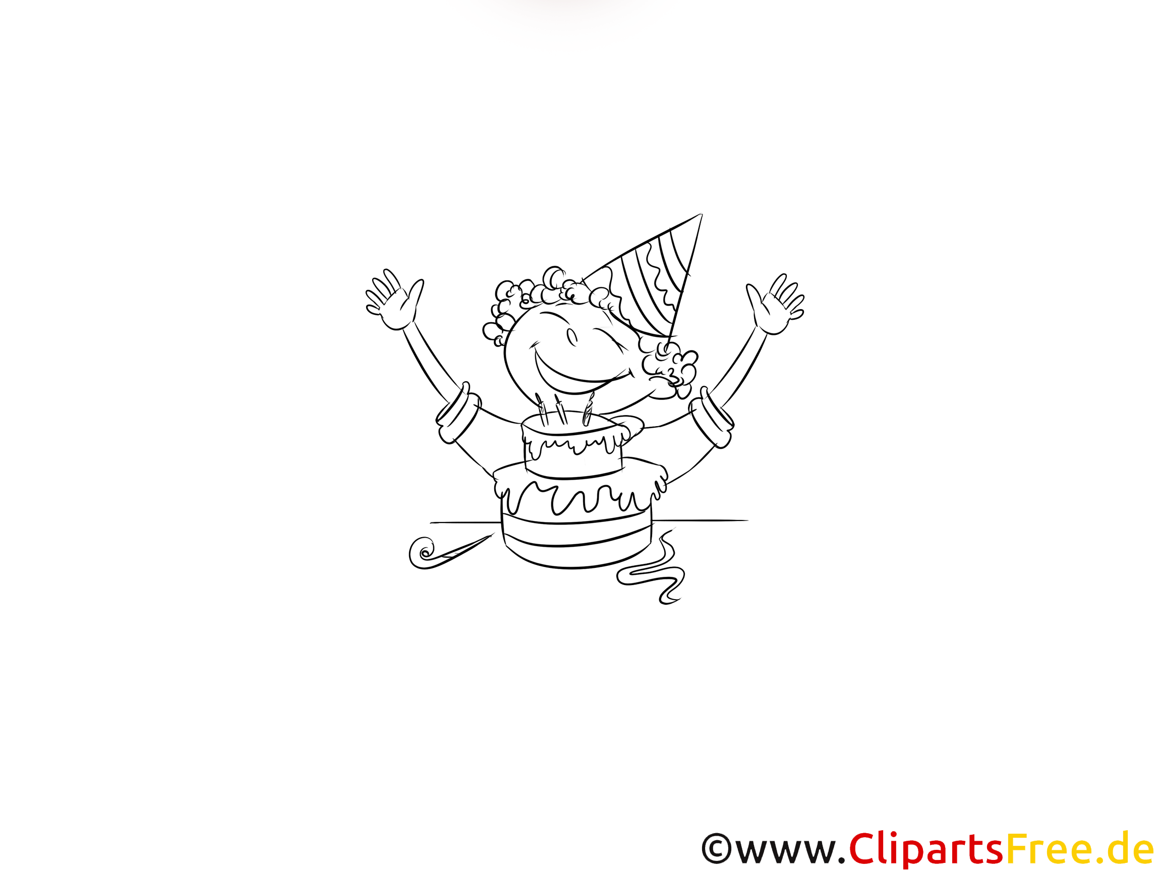 Geburtstagskind Bild PDF schwarz-weiss zum Ausmalen, Drucken
