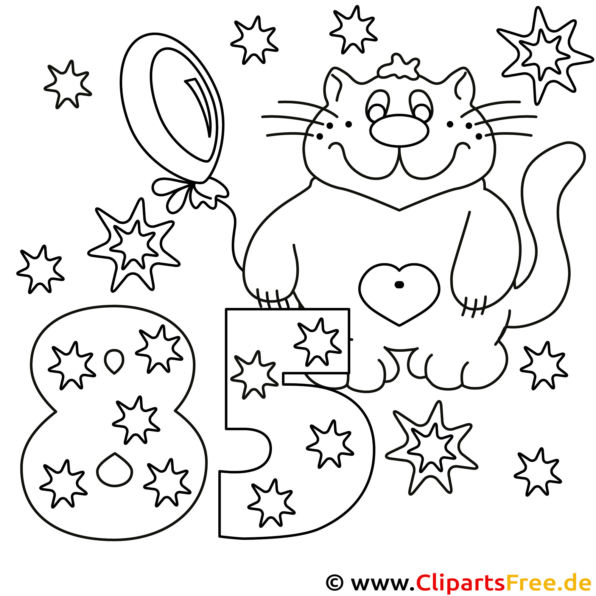 Das Bild zeigt eine fröhliche Katze, die überraschend ein Luftballon in der Hand hält. In der Mitte prangt die Zahl 85, um die herum leuchten ein paar Sterne. Überall sind kleine Sterne verteilt, die dem ganzen Motiv einen besonderen Glanz verleihen. Die Katze hat ein breites Lächeln und wirbelt so richtig vor Freude. Der Herzchen auf ihrem Bauch macht sie besonders niedlich. sozusagen, Diese Ausmalvorlage ist perfekt für jeden, der einen Hauch von Freude und Feierlichkeit mitbringen möchte.