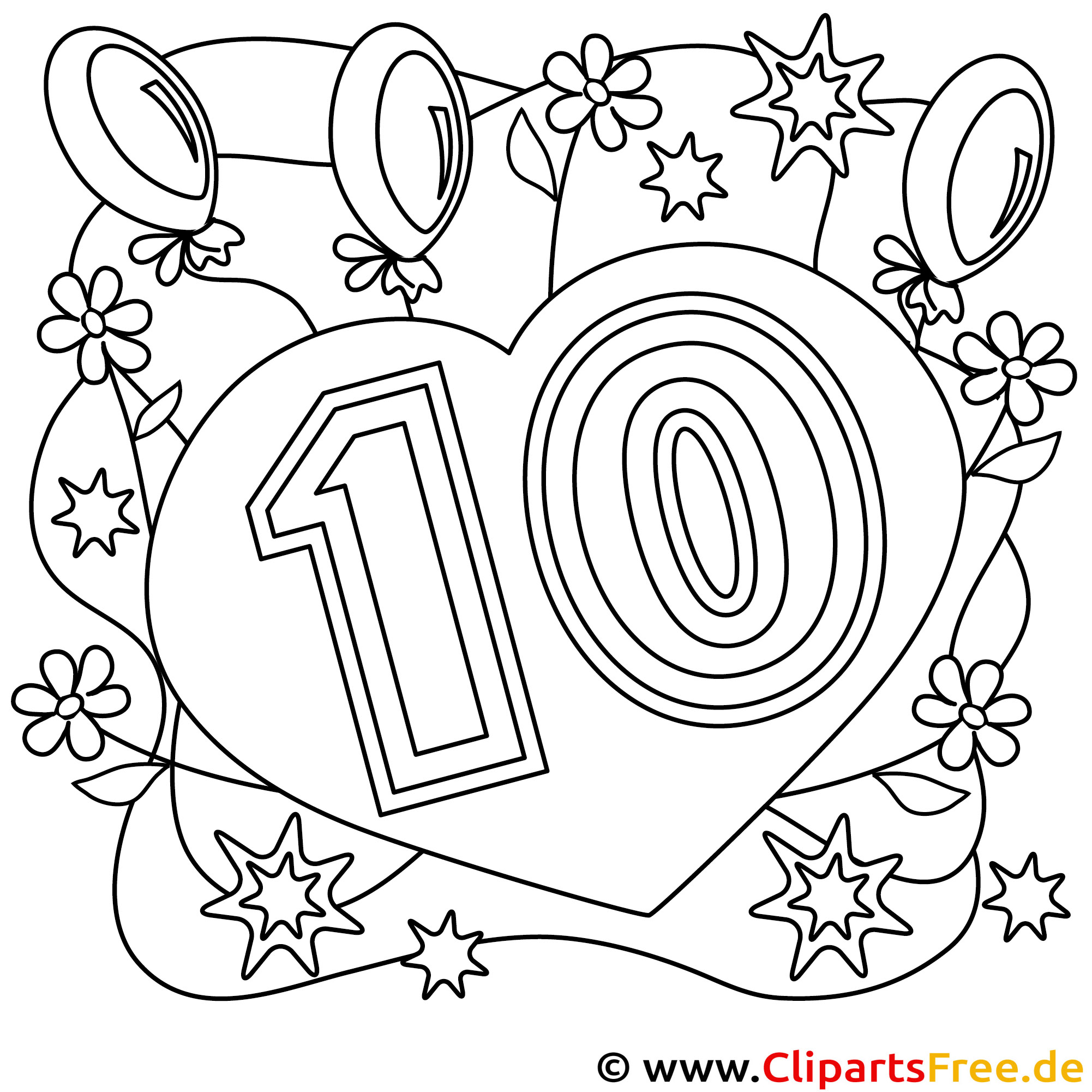 Das ausmalbare Bild zeigt eine große, liebevoll gestaltete Herzform mit der Zahl "10" in der Mitte. Umgeben wird die Zahl von bunten Luftballons und fröhlichen Blumen. Die Sterne um das Herz herum bringen eine besondere Note ins Motiv, das mit fröhlichen Details versehen wurde. Diese Ausmalvorlage ist perfekt, um einen besonderen Tag zu feiern, sei es ein Geburtstag oder ein Jubiläum. Die fröhlichen Elemente, die vielen Farben und Formen bieten jede Menge Raum für kreative Entfaltung–. Bereit, deine Fantasie zu entfesseln?