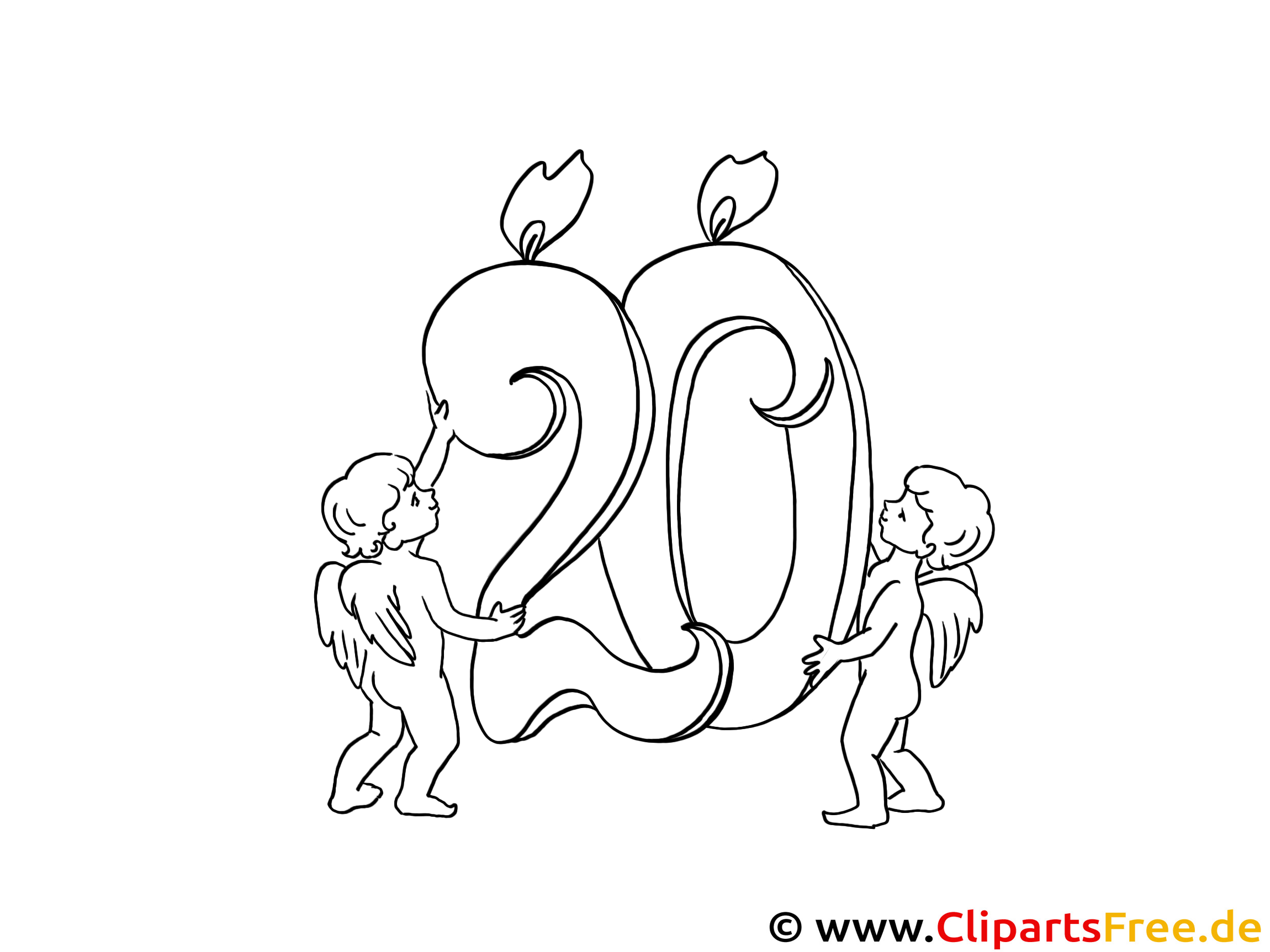 Das Ausmalbild zeigt zwei niedliche Engelchen, die zusammen die Zahl „20“ präsentieren. Die beiden kleinen Gehilfen sind richtig knuffig, mit ihren zarten Flügeln und den fröhlichen Gesichtern könnte man sie glatt für die nächsten Weihnachtskarten verwenden. Über der Zahl leuchten zwei entzückende Kerzen, die einen festlichen Charakter haben – perfekt, um besondere Anlässe zu feiern. Vielleicht ein Geburtstag oder ein Jubiläum? Die große Zahl, von spielerischen Verzierungen umgeben, macht das Bild lebendig und lädt geradezu zum Ausmalen ein.
