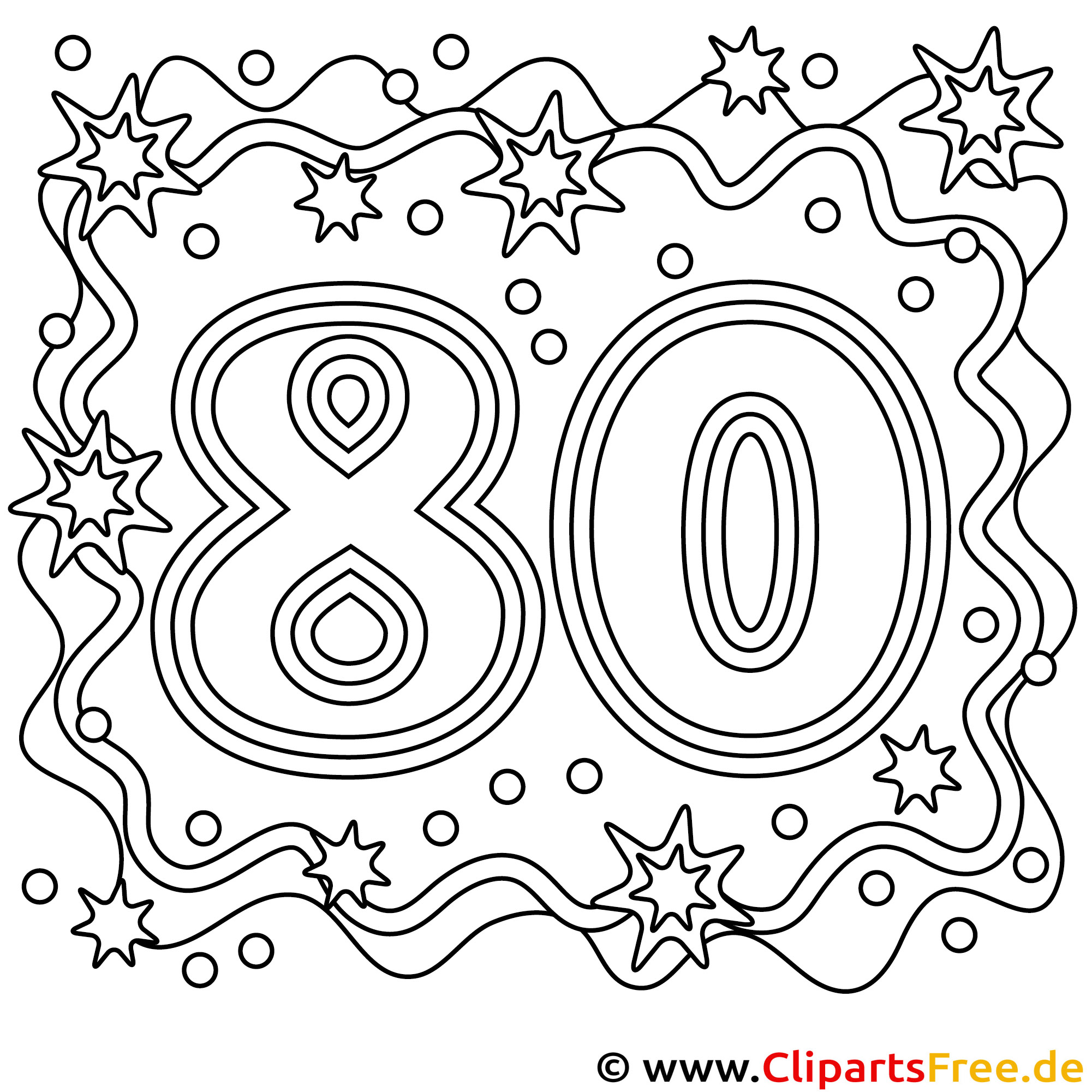 Das Ausmalbild zeigt in großen, gut lesbaren Zahlen die „80“. Umgeben sind die Ziffern von verschiedenen Sternen und geschwungenen Linien, die dem Motiv eine fröhliche, festliche Atmosphäre verleihen. Diese Kombination ist perfekt, um einen besonderen Moment zu feiern – ganz besonders die Feier zu einem runden Geburtstag. Man kann förmlich die Freude spüren, die mit dieser Zahl verbunden ist. Es steckt so viel Feierlichkeit in der Grafik!