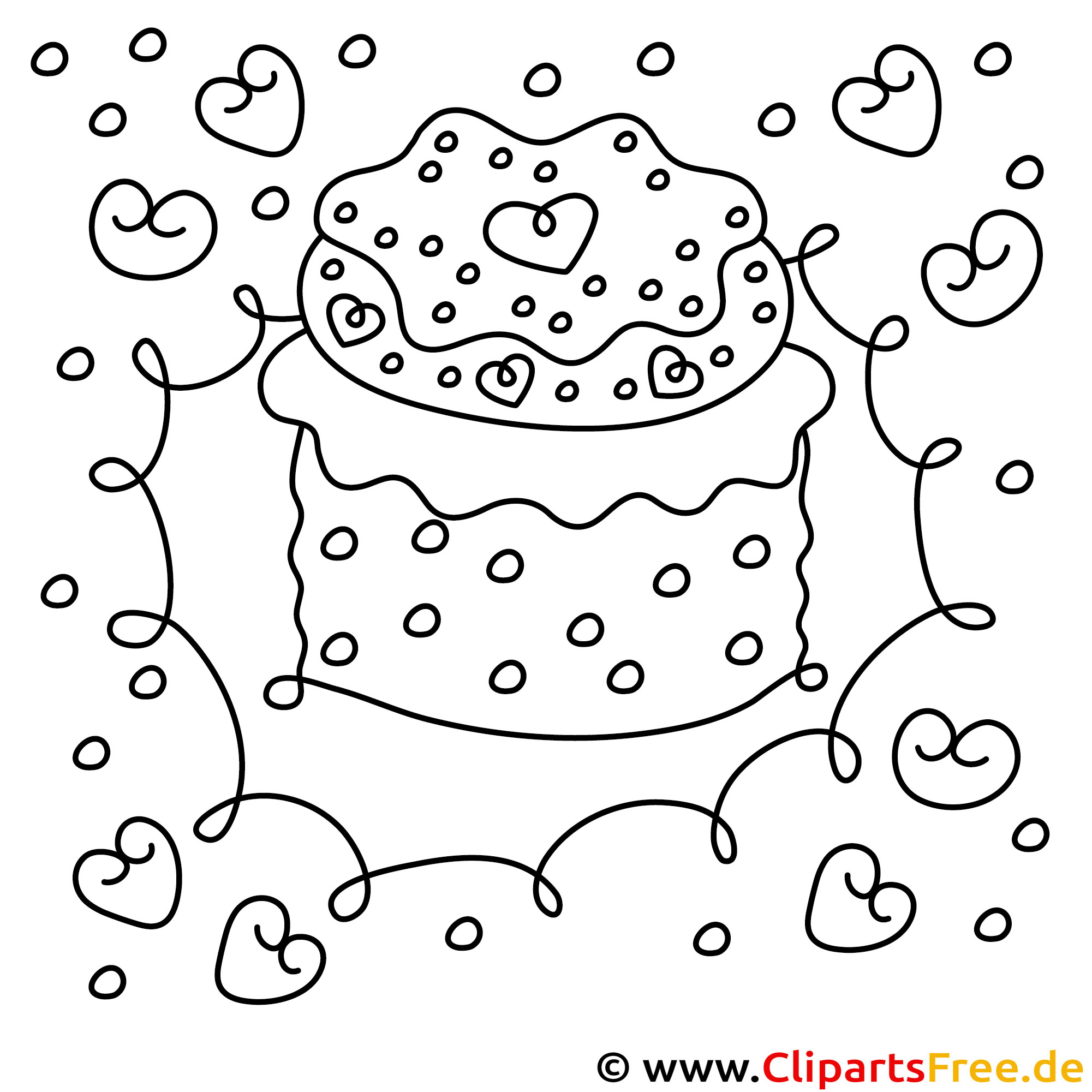 Torte zum Geburtstag Bild zum Ausmalen, Malvorlage, Ausmalbild