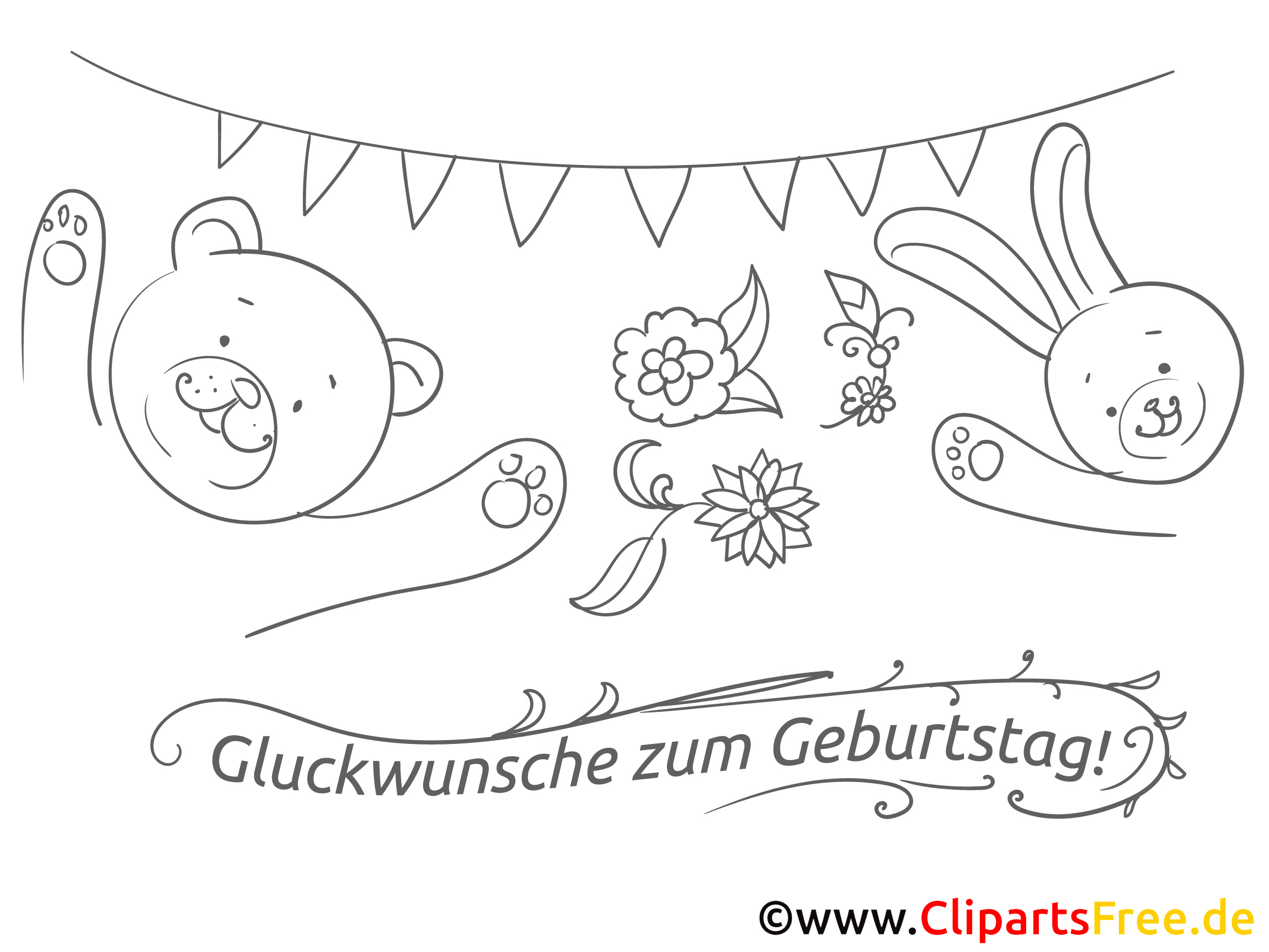 Bär Hase Ausmalbild - Geburtstag Bilder kostenlos