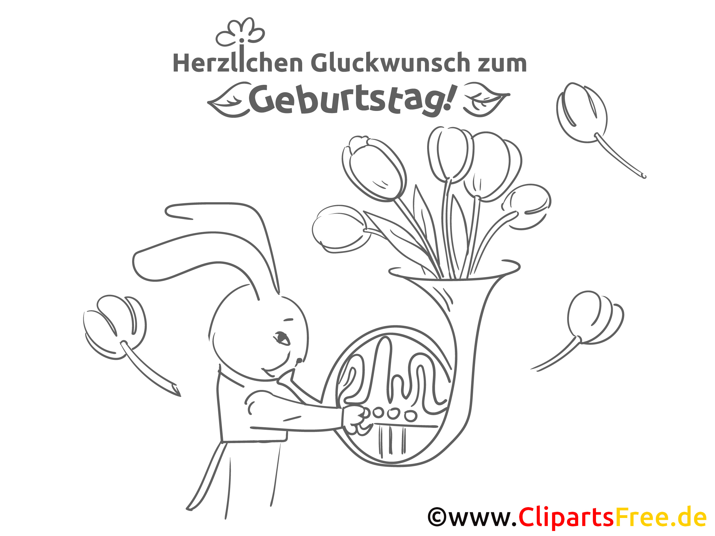 Blumen Hase Malvorlage - Grusskarten zum Geburtstag selbst basteln