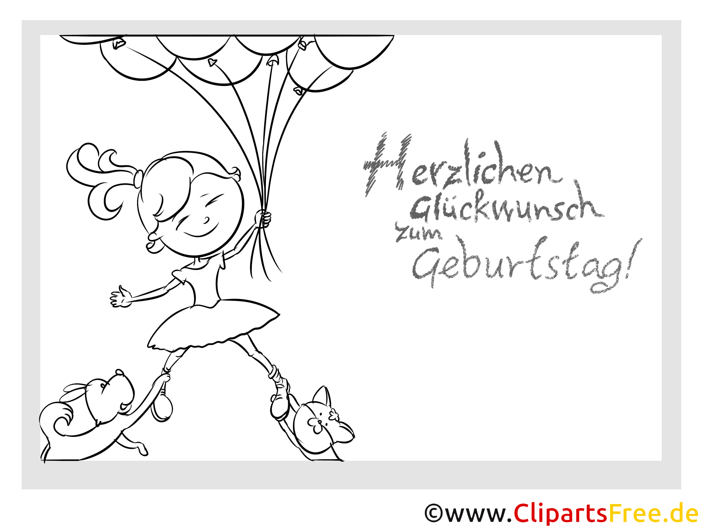 Mädchen Luftballons Vorlage zum Ausmalen zum Geburtstag