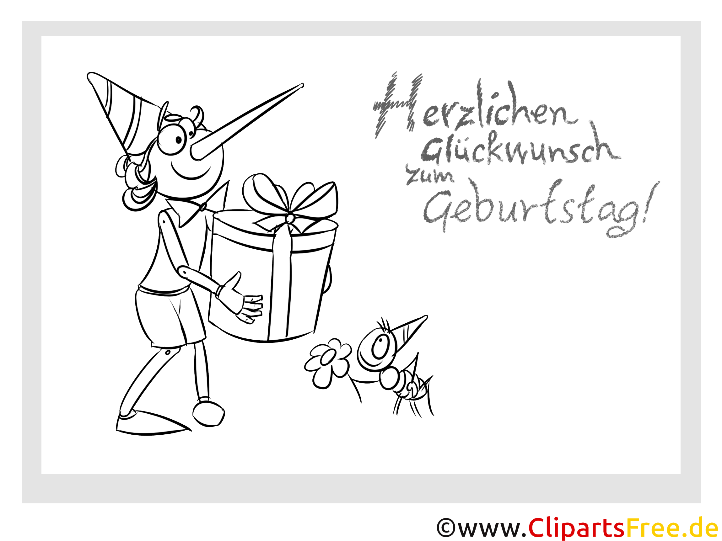 Pinocchio Geschenk Vorlage zum Ausmalen zum Geburtstag