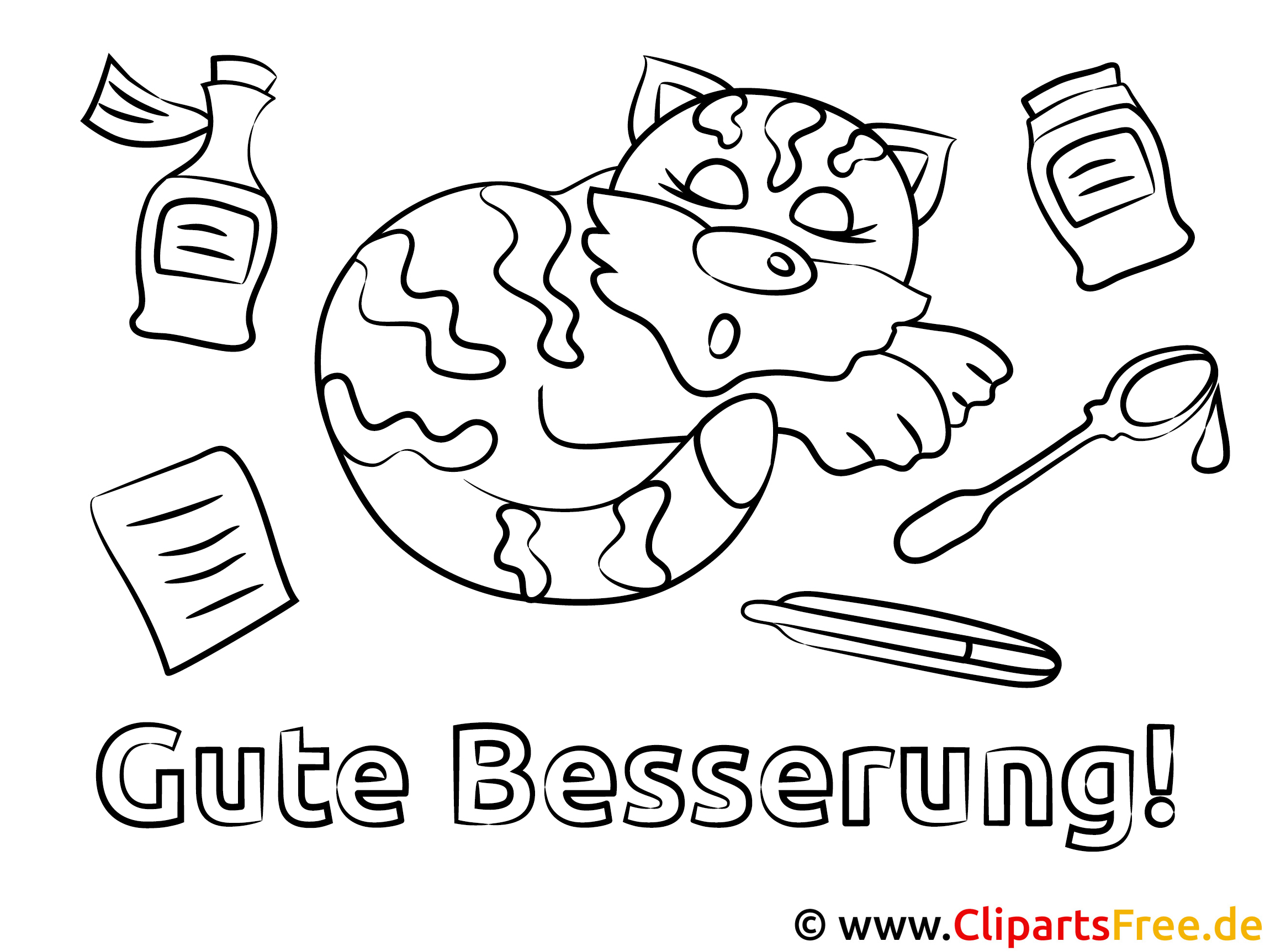 Kranke Katze Gute Besserung Ausmalbilder gratis für Kinder