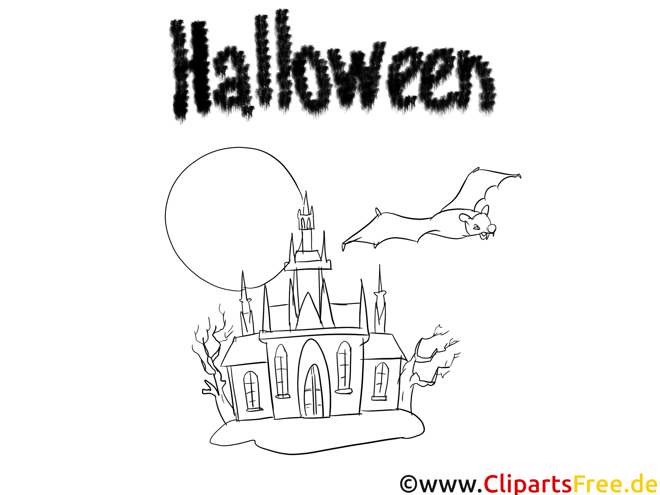 Ausmalbilder Halloween Fledermaus und Burg