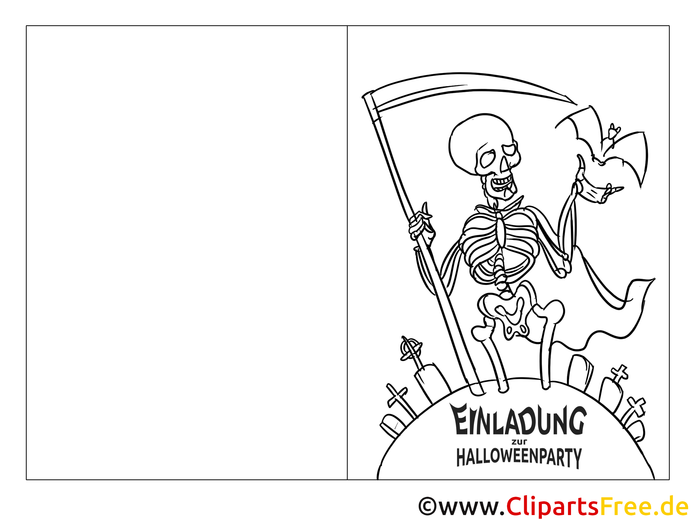 Hier haben wir ein wirklich cooles Ausmalbild, das perfekt zu Halloween passt! Ein fröhlicher Skelet, der mit einer Sense in der einen Hand und einem kleinen, fliegenden Vampir in der anderen posiert. Um ihn herum gibt es ein paar Grabsteine, die bei der Gesamtatmosphäre super beitragen. Außerdem steht in großen Buchstaben “Einladung zur Halloweenparty” – das ist doch ein wahrer Hingucker! Man könnte sagen, es ist sowohl gruselig als auch lustig, was die perfekte Mischung für eine gelungene Halloweenfeier ist. Die vielen Details laden zum Ausmalen ein und fördern die Kreativität.