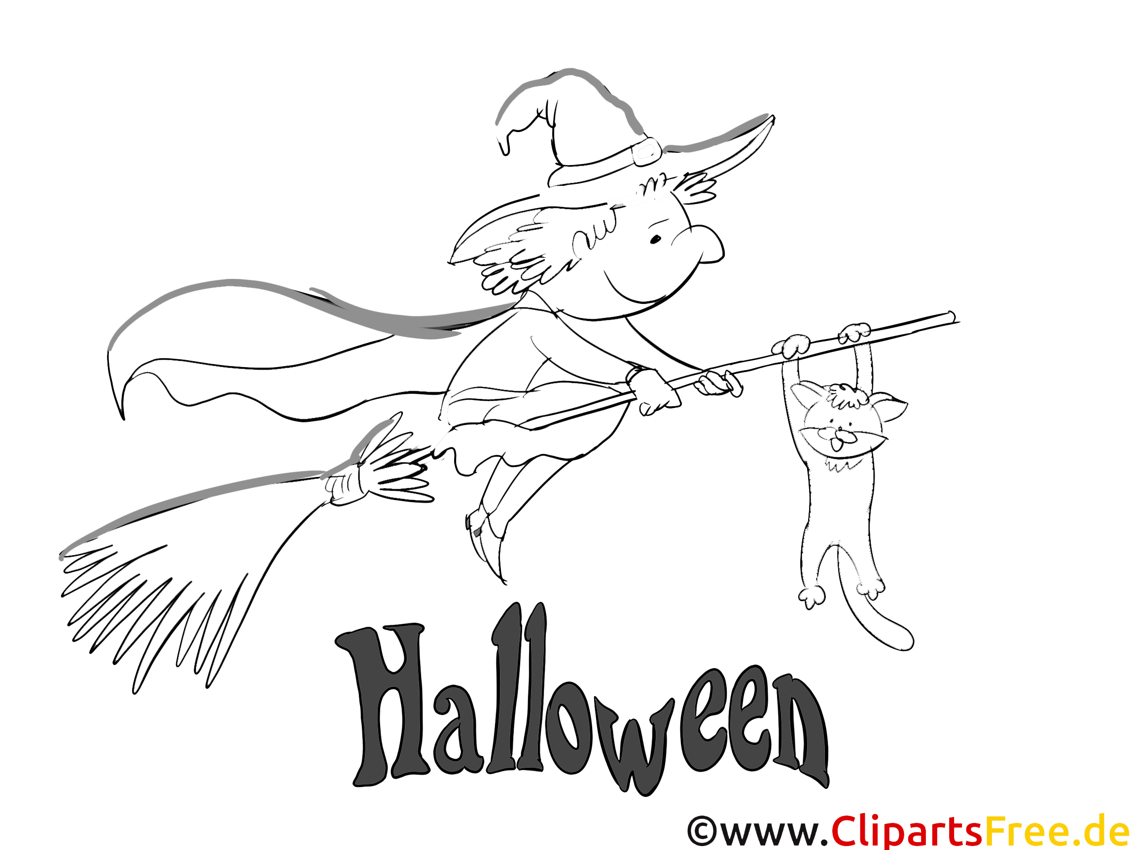 Fliegende Hexe zu Halloween Bild, Malvorlage